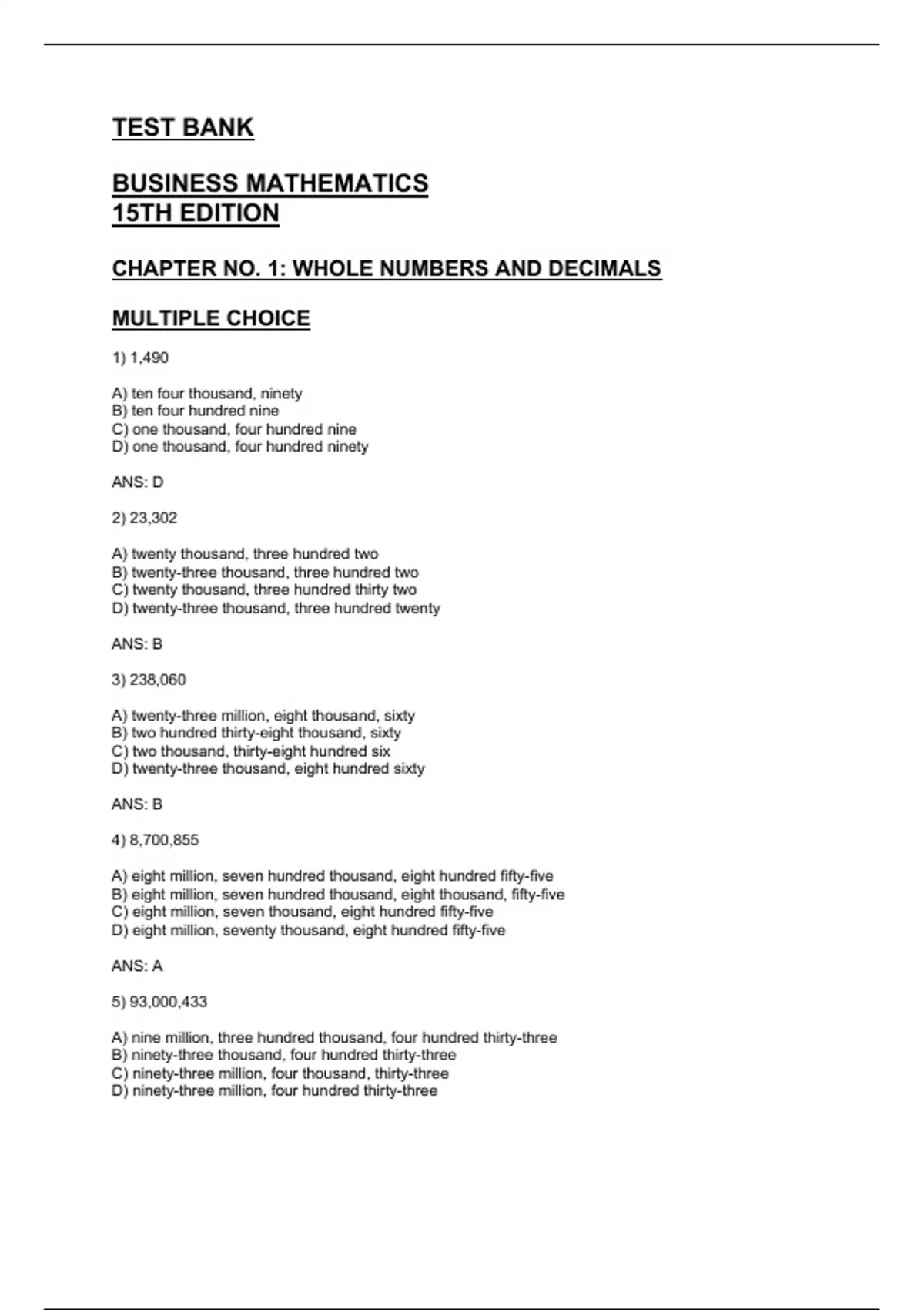 CHAPTER NO. 1: WHOLE NUMBERS AND DECIMALS