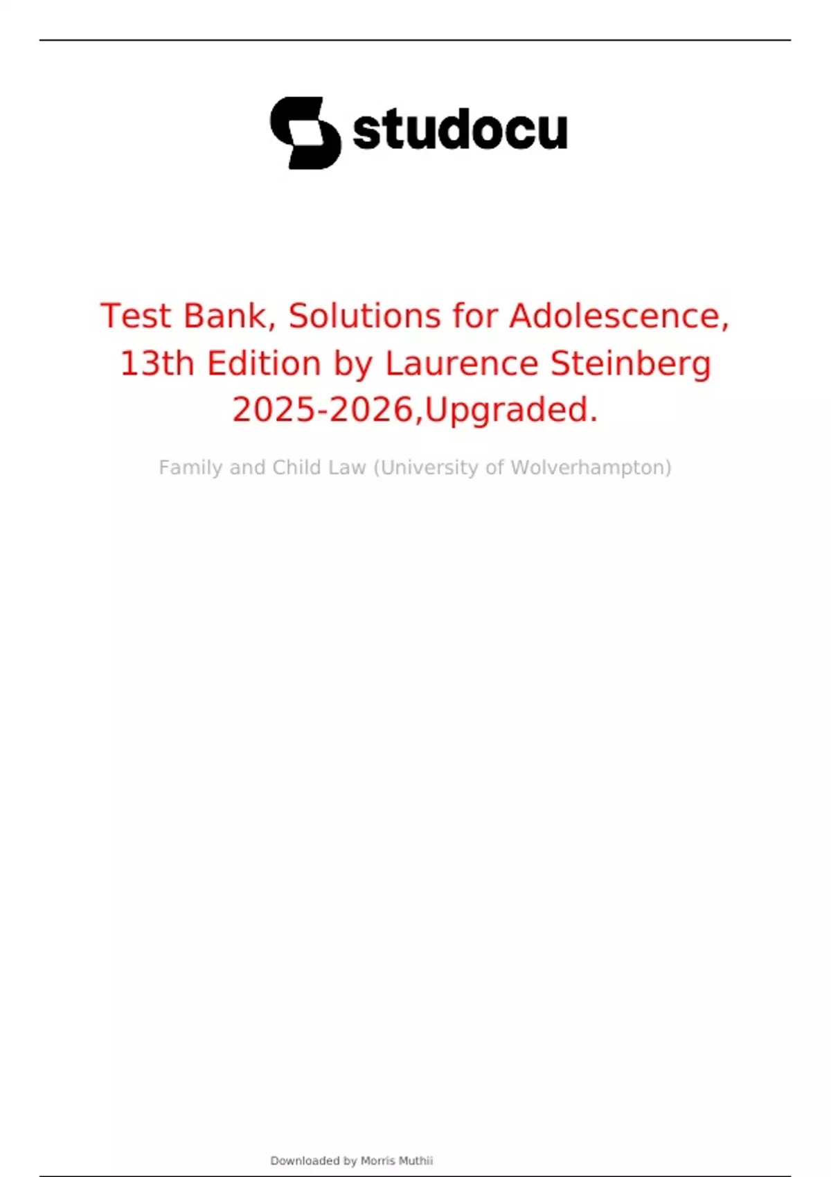 Test Bank, Solutions for Adolescence, 13th Edition by Laurence Steinberg ,Upgraded.