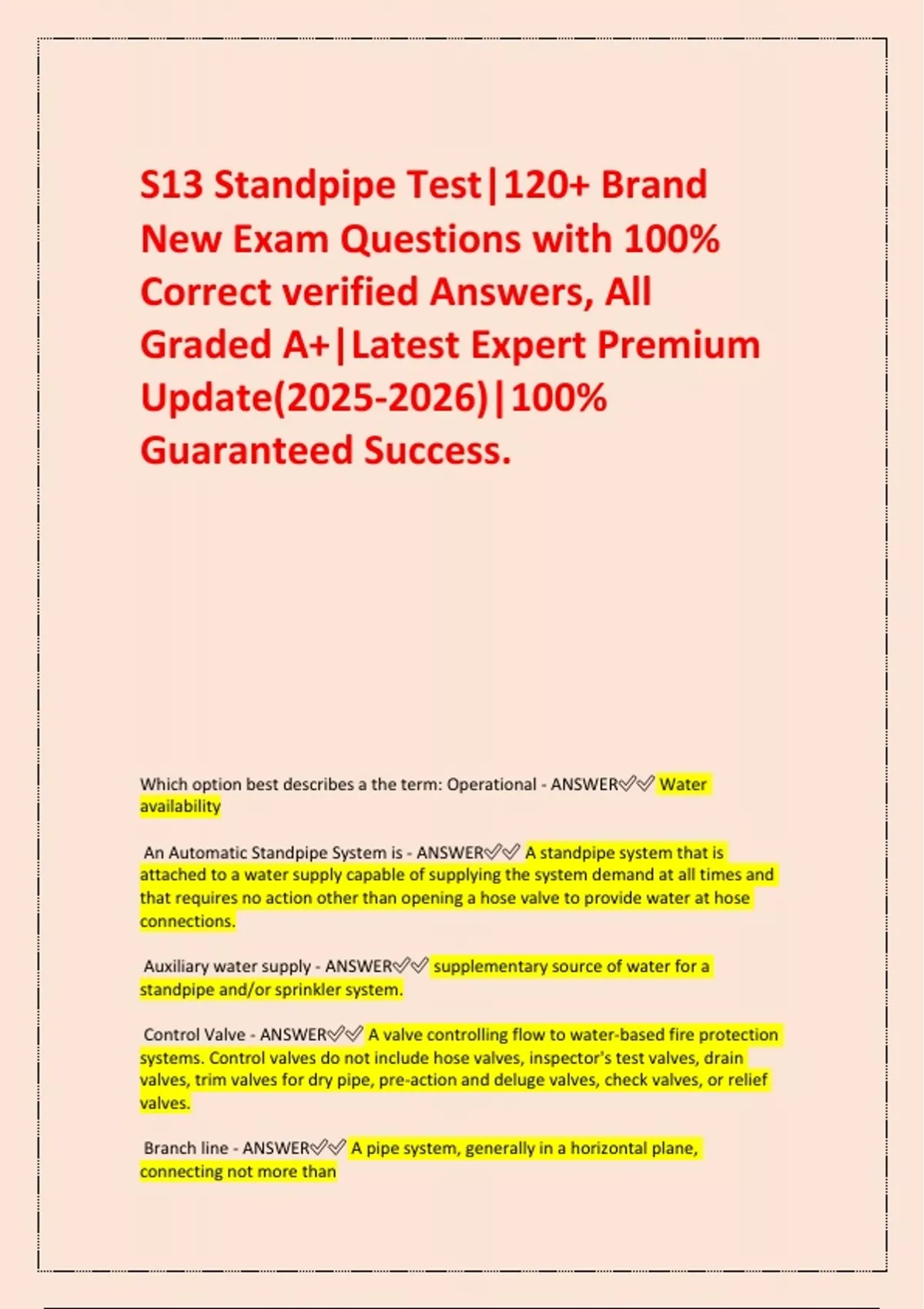 An Automatic Standpipe System is - ANSWER✅✅ A standpipe system that is