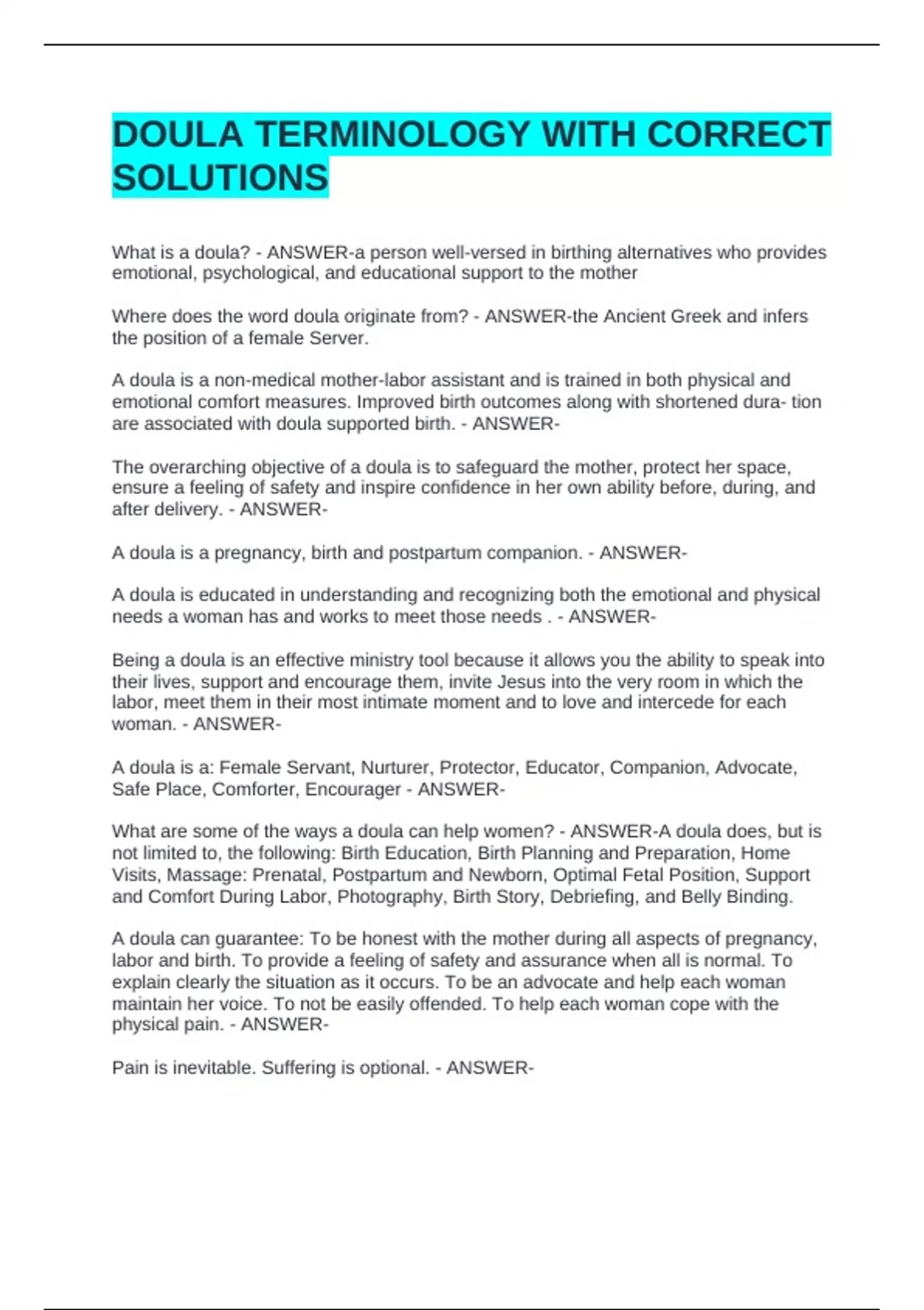 To become a doula is to become an advocate. - ANSWER-