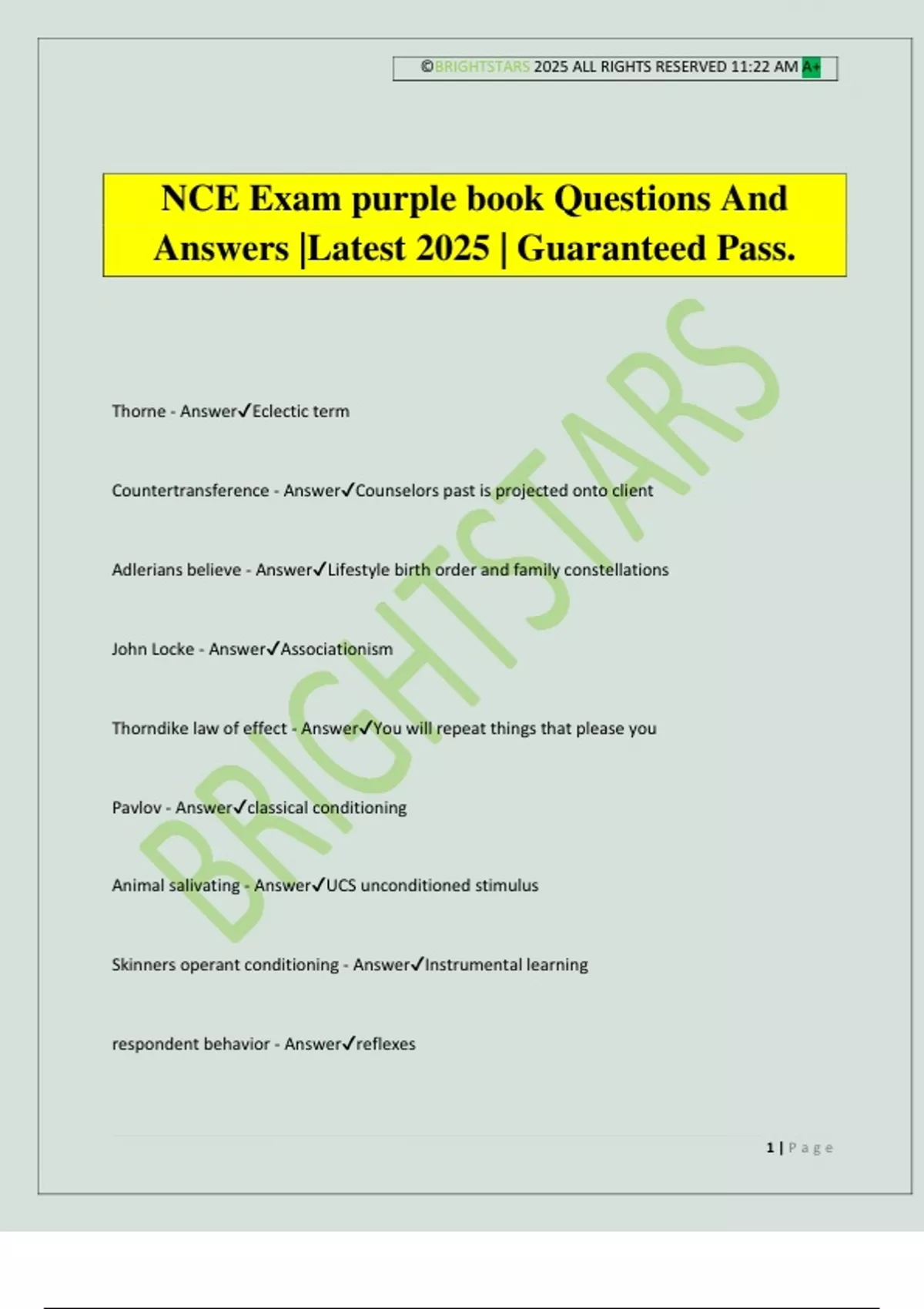 NCE Exam purple book Questions And