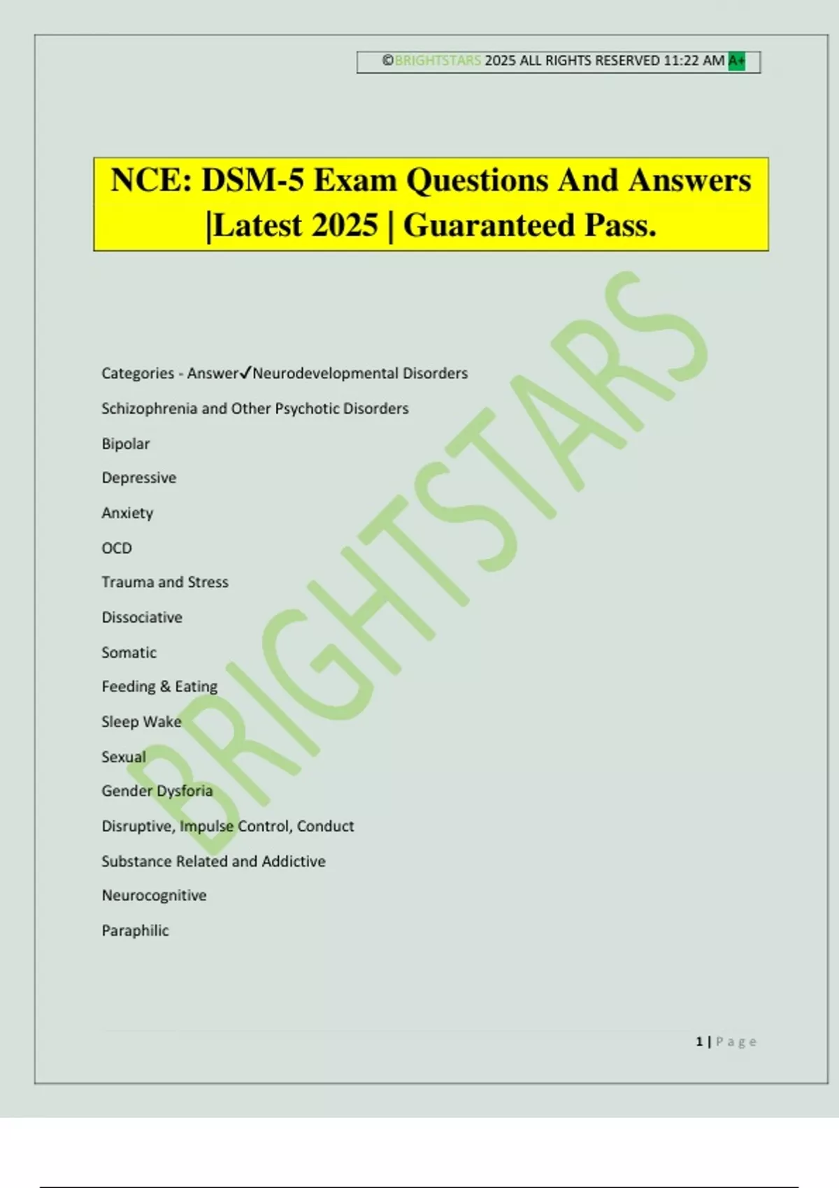 NCE: DSM-5 Exam Questions And Answers