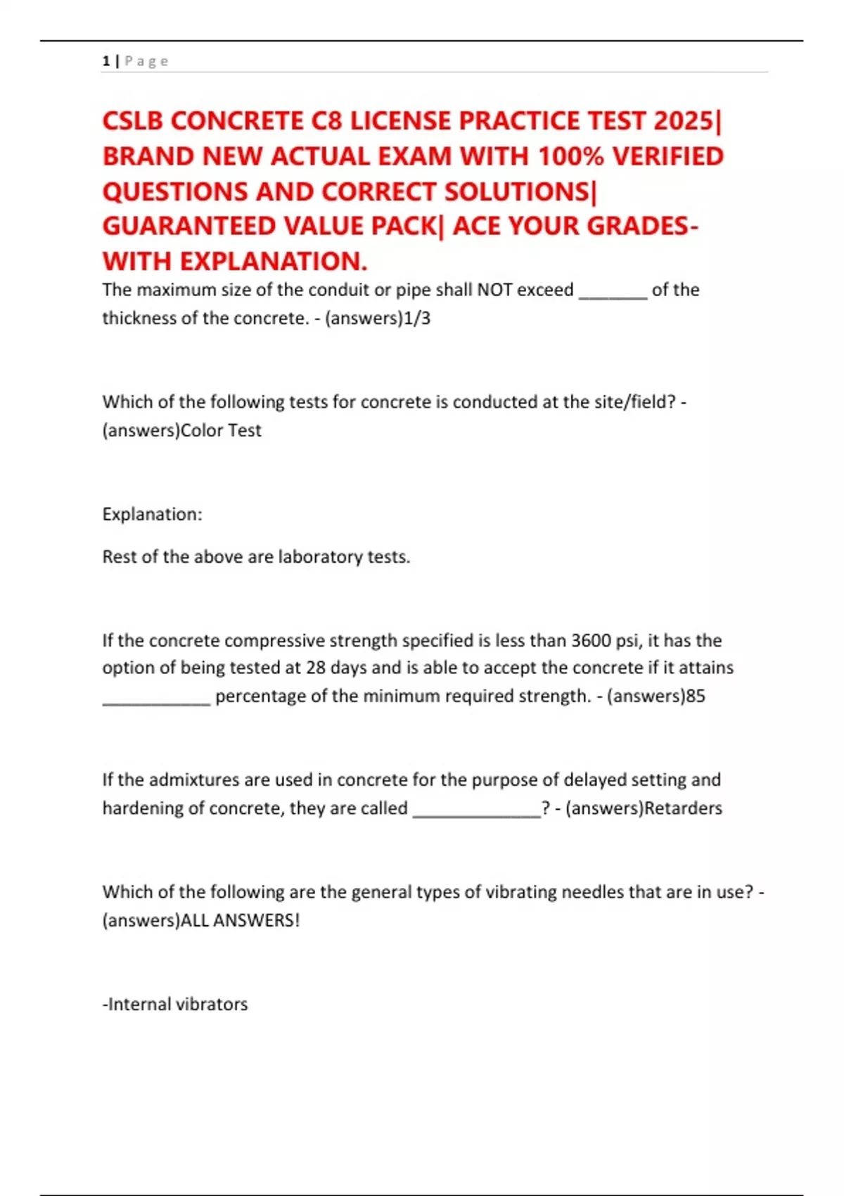 CSLB CONCRETE C8 LICENSE PRACTICE TEST 2025|