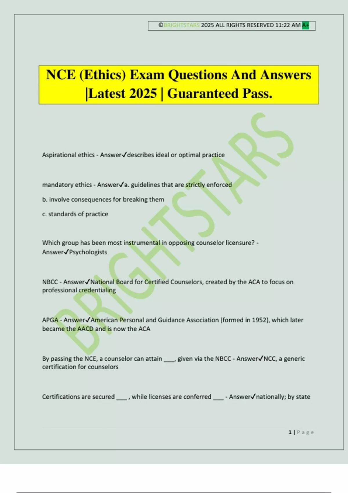 NCE (Ethics) Exam Questions And Answers |Latest 2025 | Guaranteed Pass.