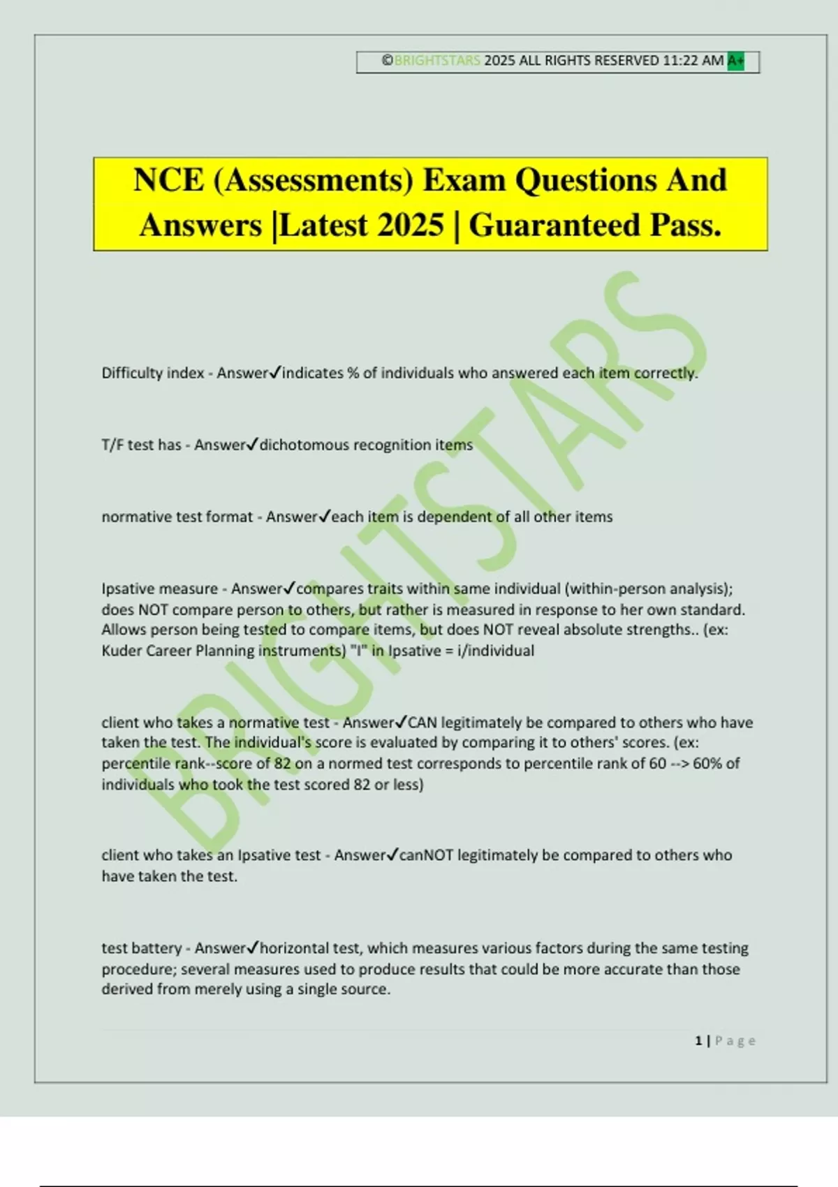 NCE (Assessments) Exam Questions And