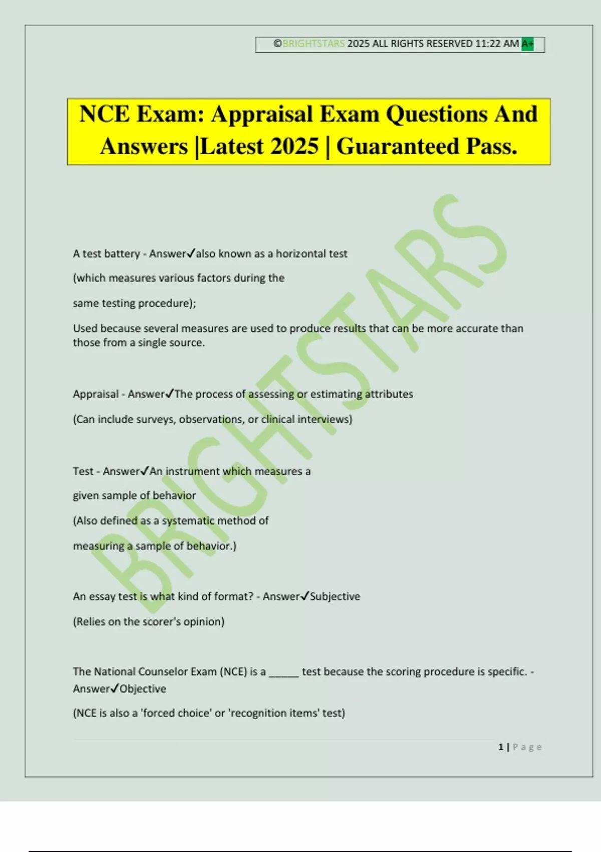 NCE Exam: Appraisal Exam Questions And