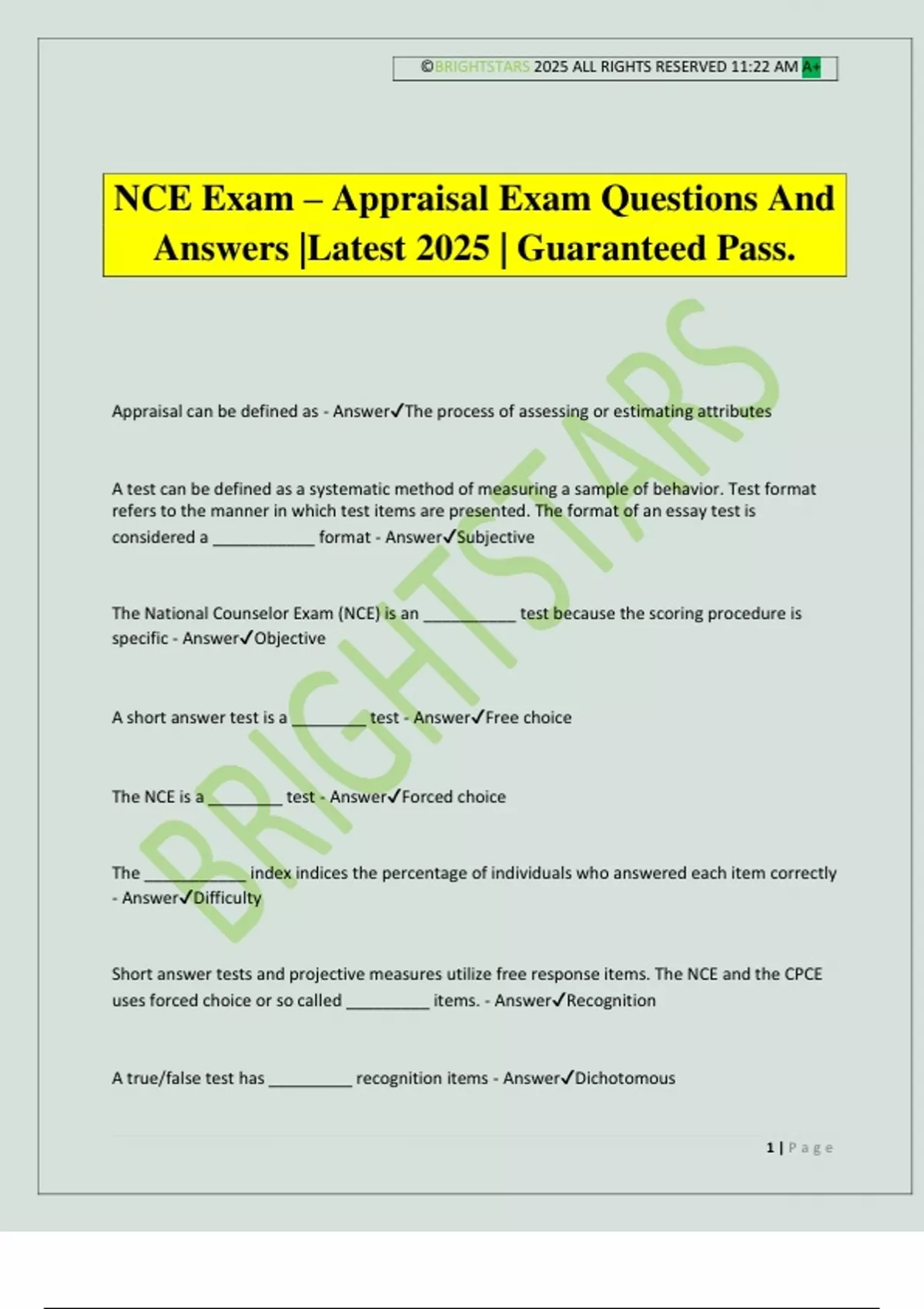 Appraisal can be defined as - Answer✔The process of assessing or estimating attributes