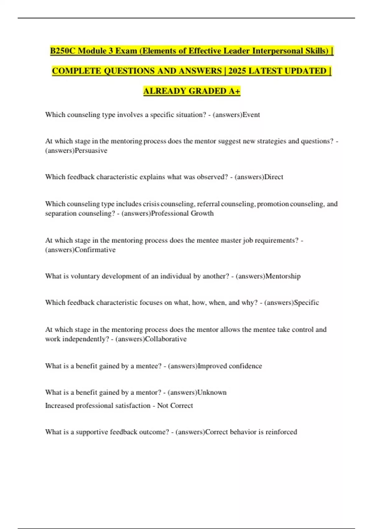 B250C Module 3 Exam (Elements of Effective Leader Interpersonal Skills) |