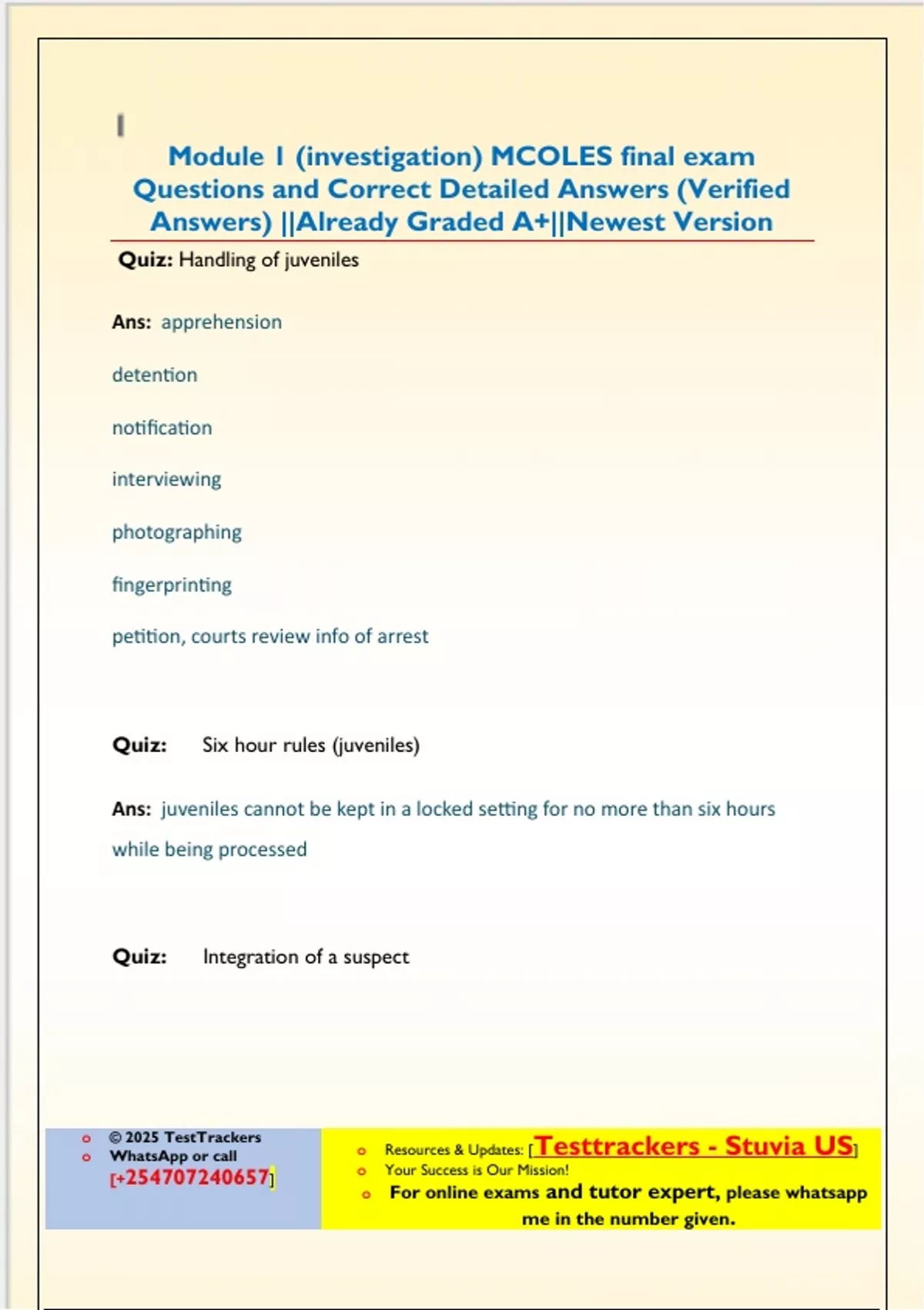 WhatsApp or call o Resources & Updates: [Testtrackers - Stuvia US]
