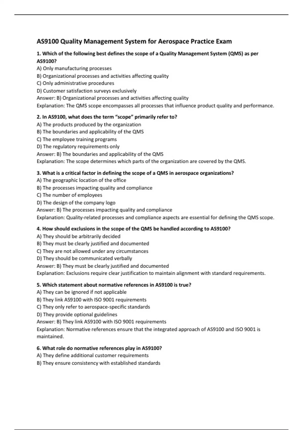Explanation: Normative references help align AS9100 with other recognized standards like ISO 9001.