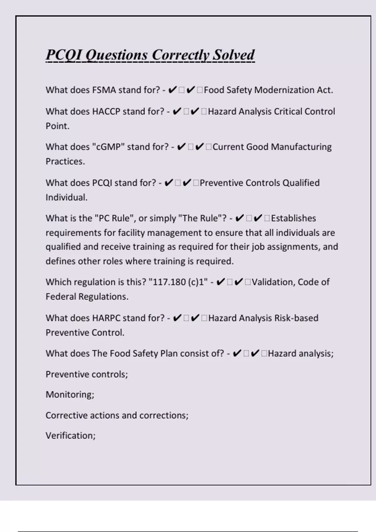 PCQI Questions Correctly Solved Correctly |Success Guaranteed
