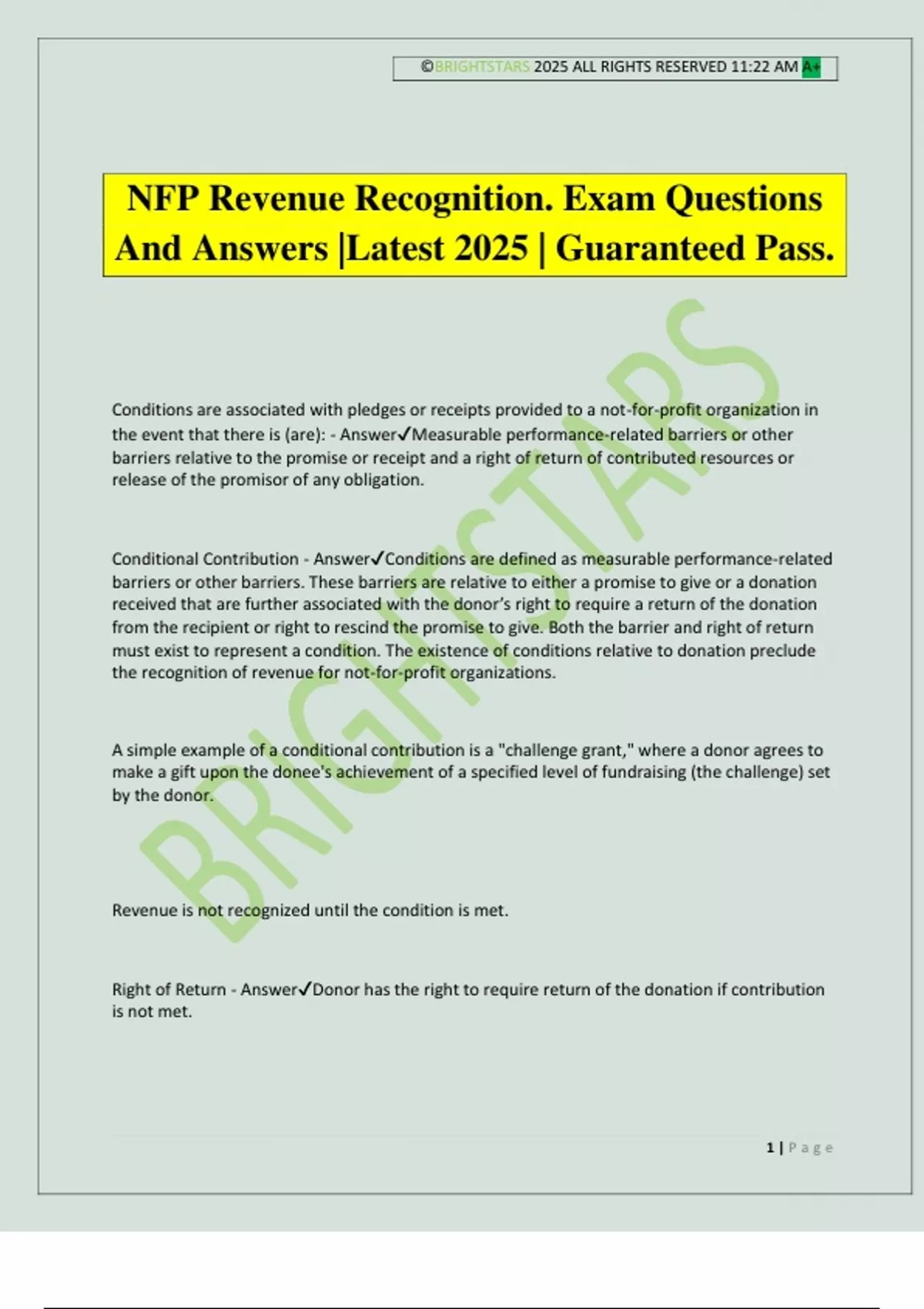 NFP Revenue Recognition. Exam Questions