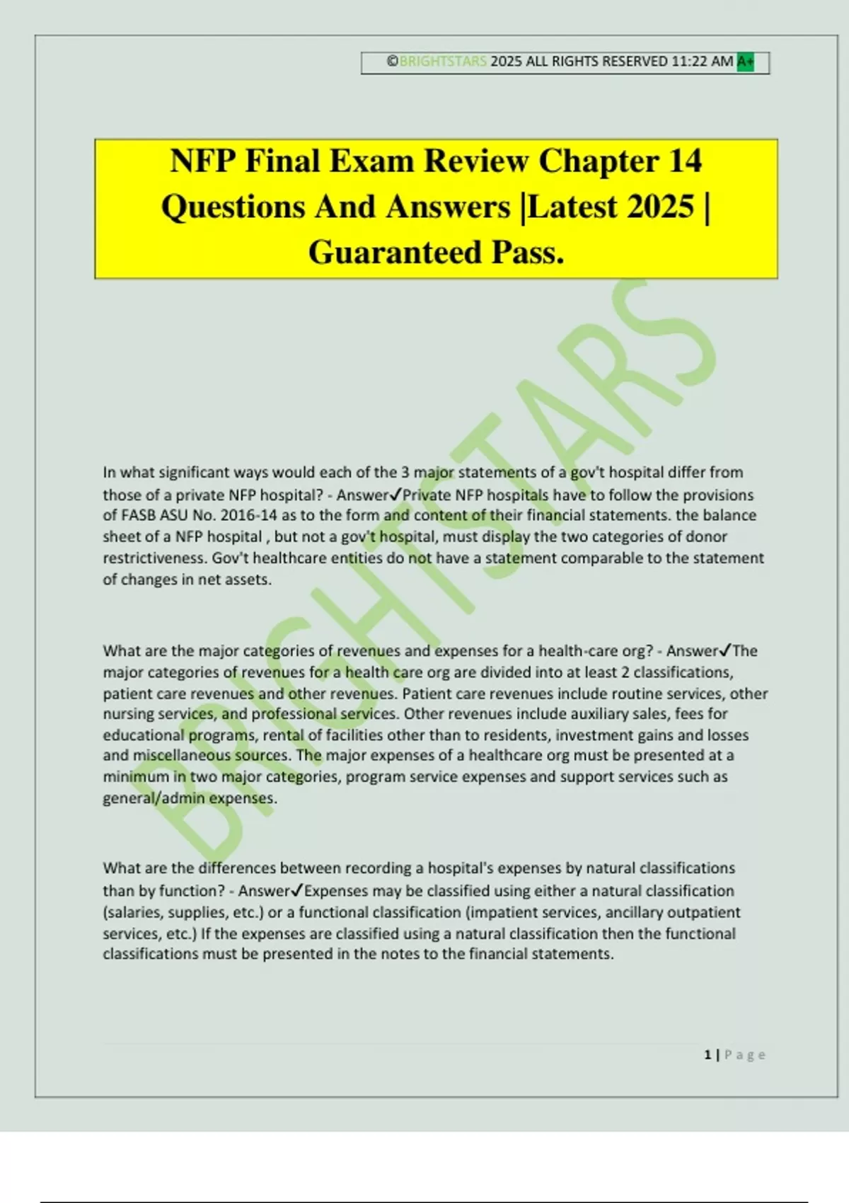 those of a private NFP hospital? - Answer✔Private NFP hospitals have to follow the provisions