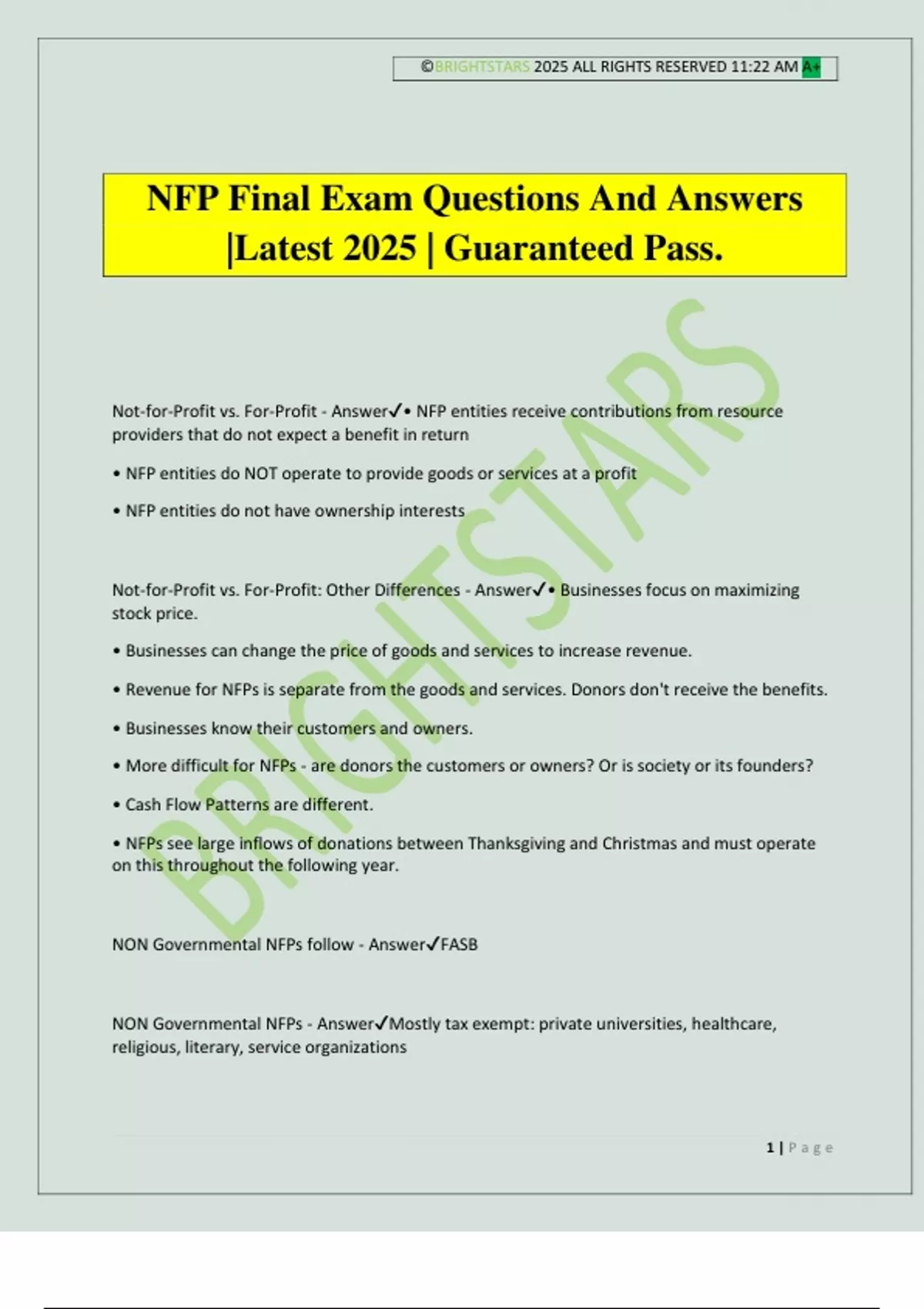 Not-for-Profit vs. For-Profit - Answer✔• NFP entities receive contributions from resource