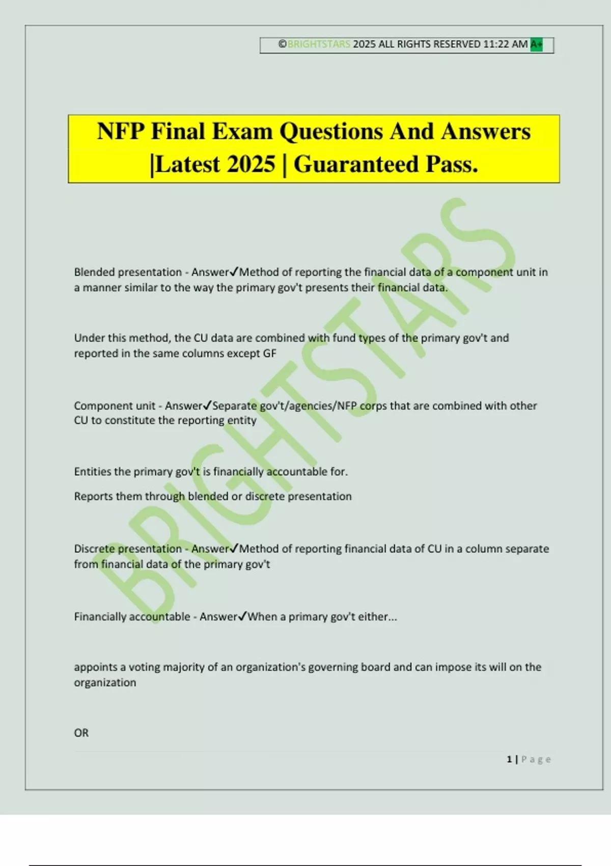 Component unit - Answer✔Separate gov't/agencies/NFP corps that are combined with other