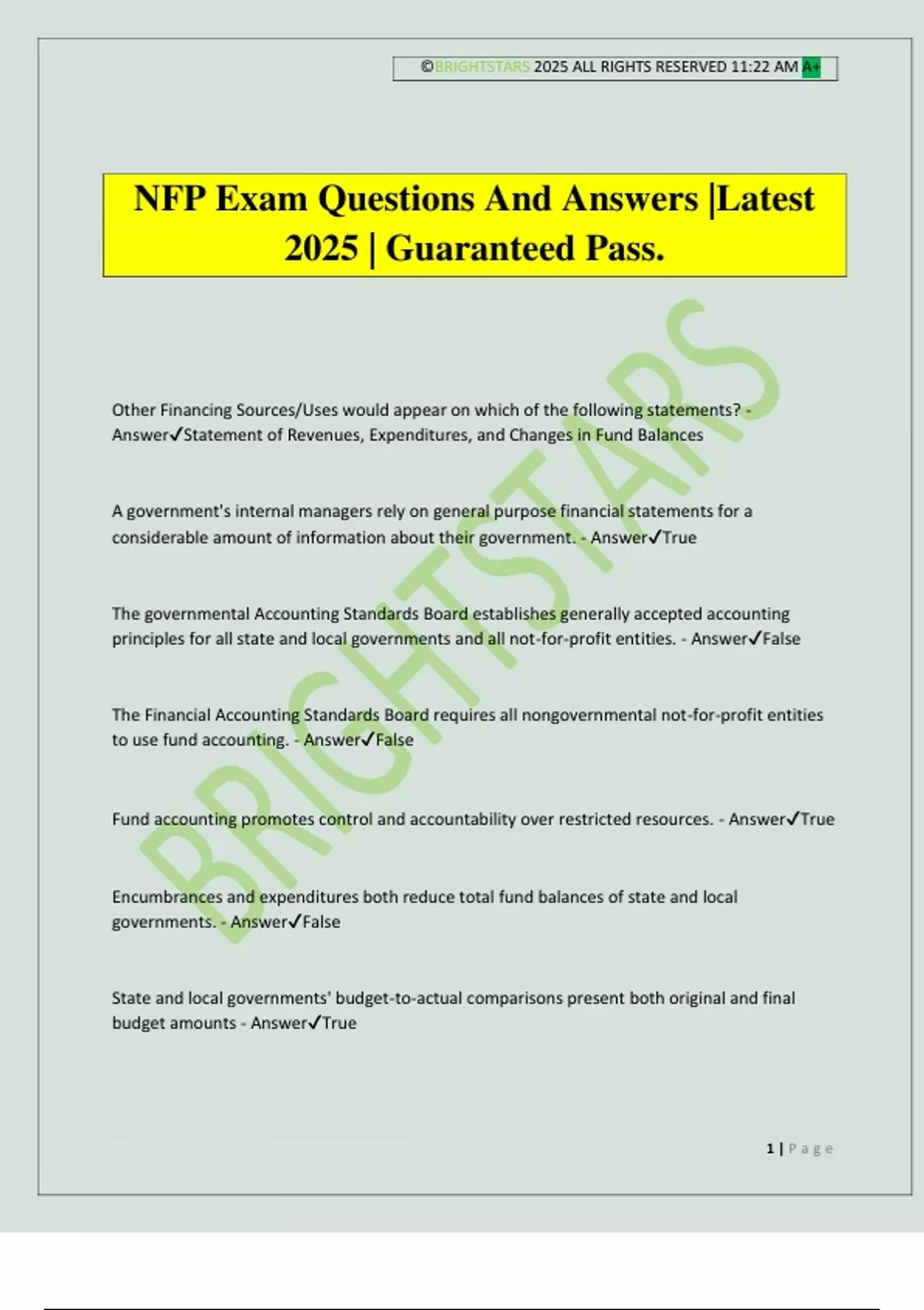 NFP Exam Questions And Answers |Latest