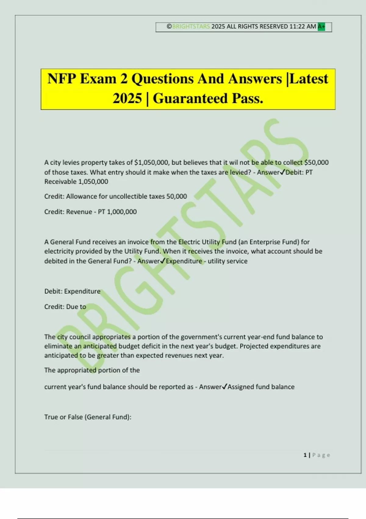 NFP Exam 2 Questions And Answers |Latest