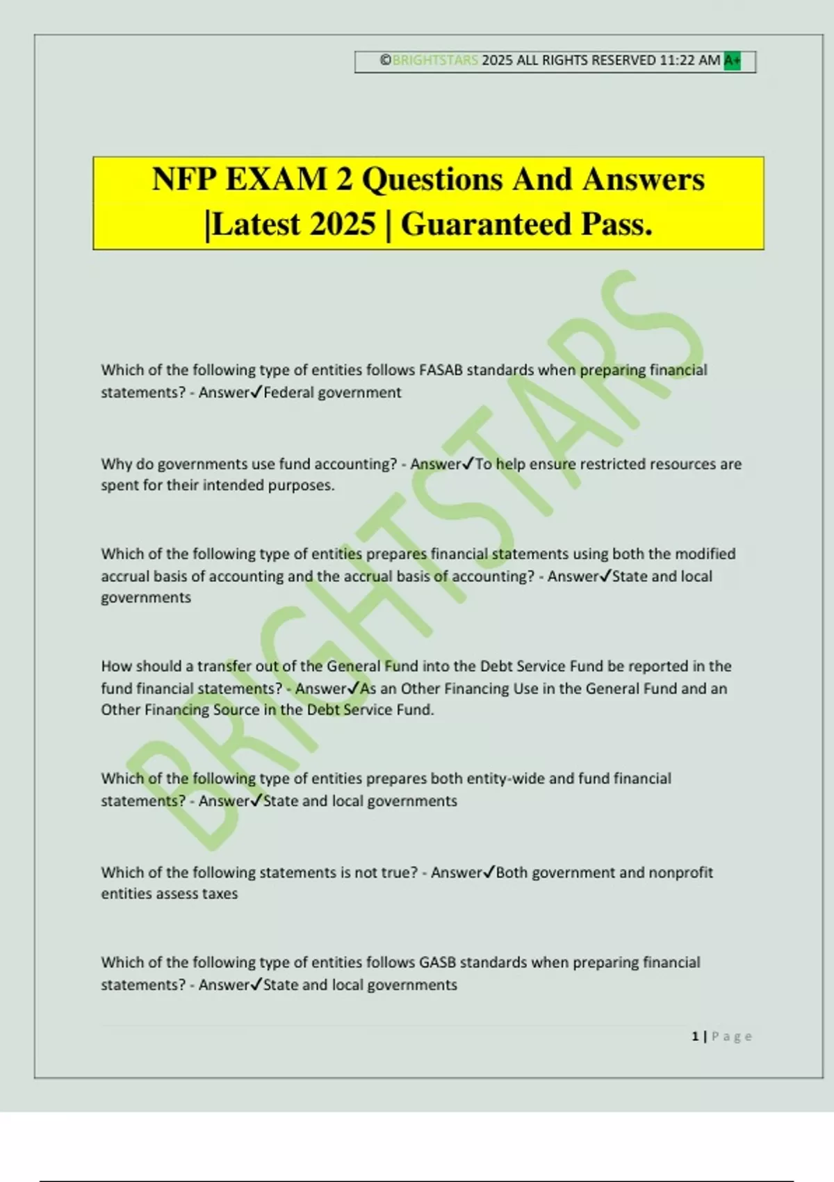 statements? - Answer✔Nonprofit entities and business enterprises