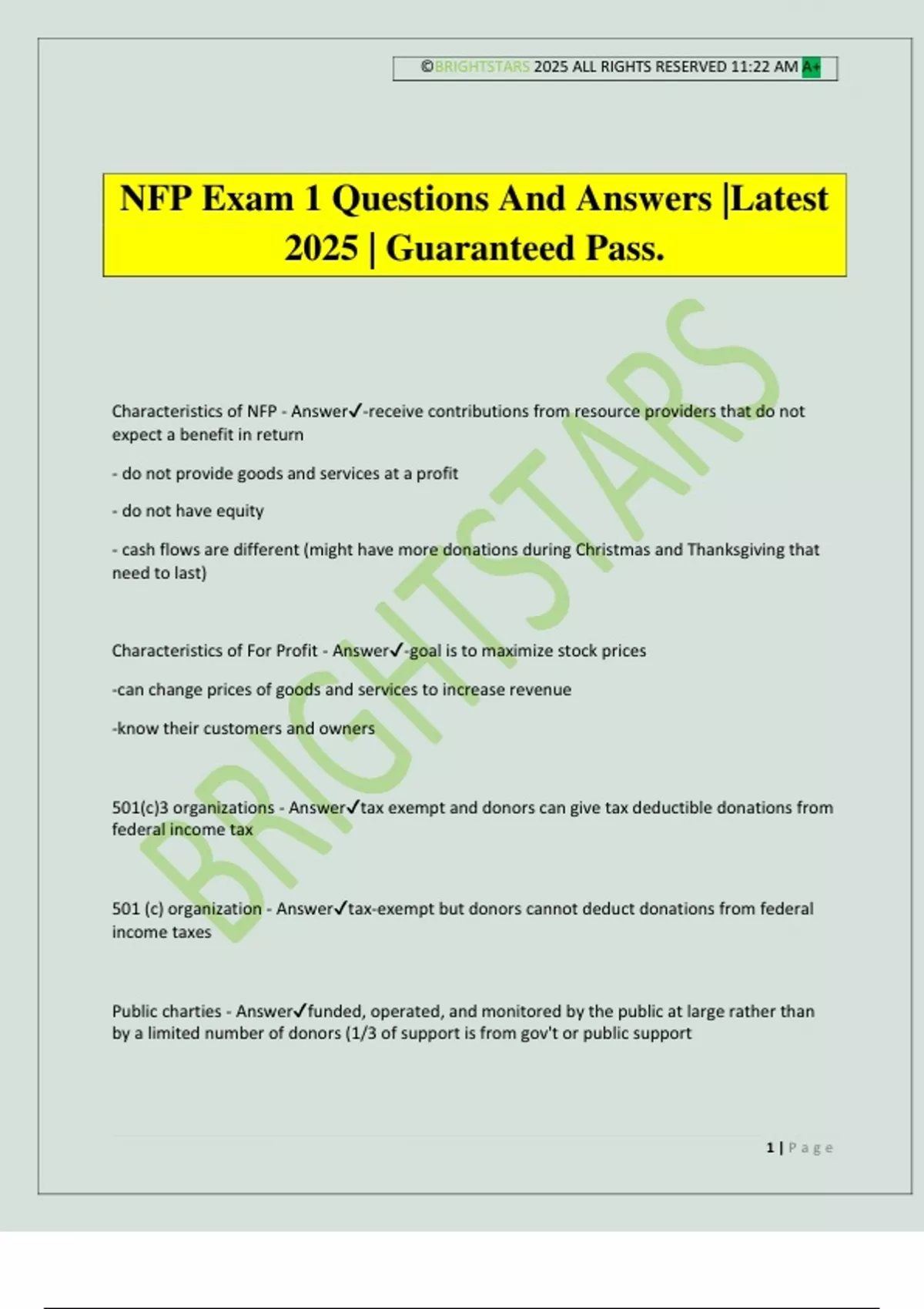 Characteristics of NFP - Answer✔-receive contributions from resource providers that do not
