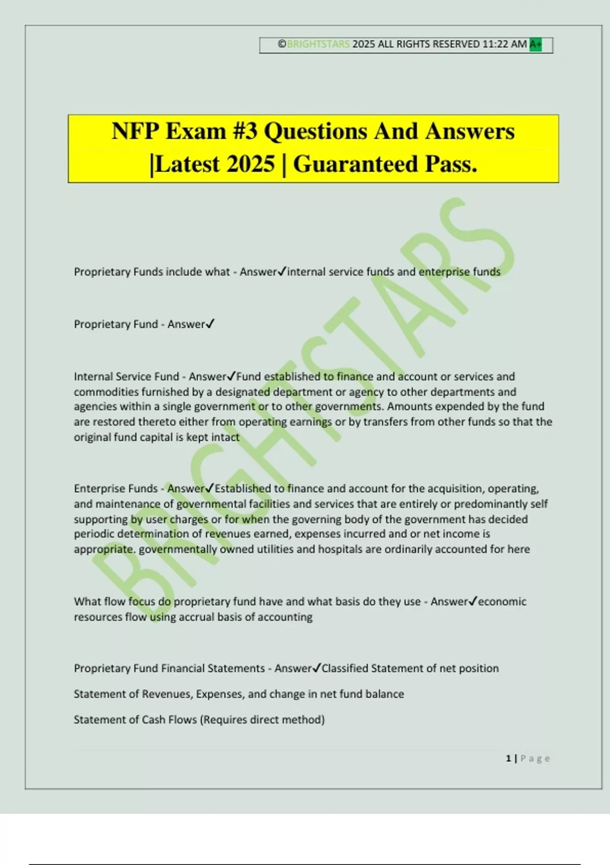 Proprietary Fund - Answer✔