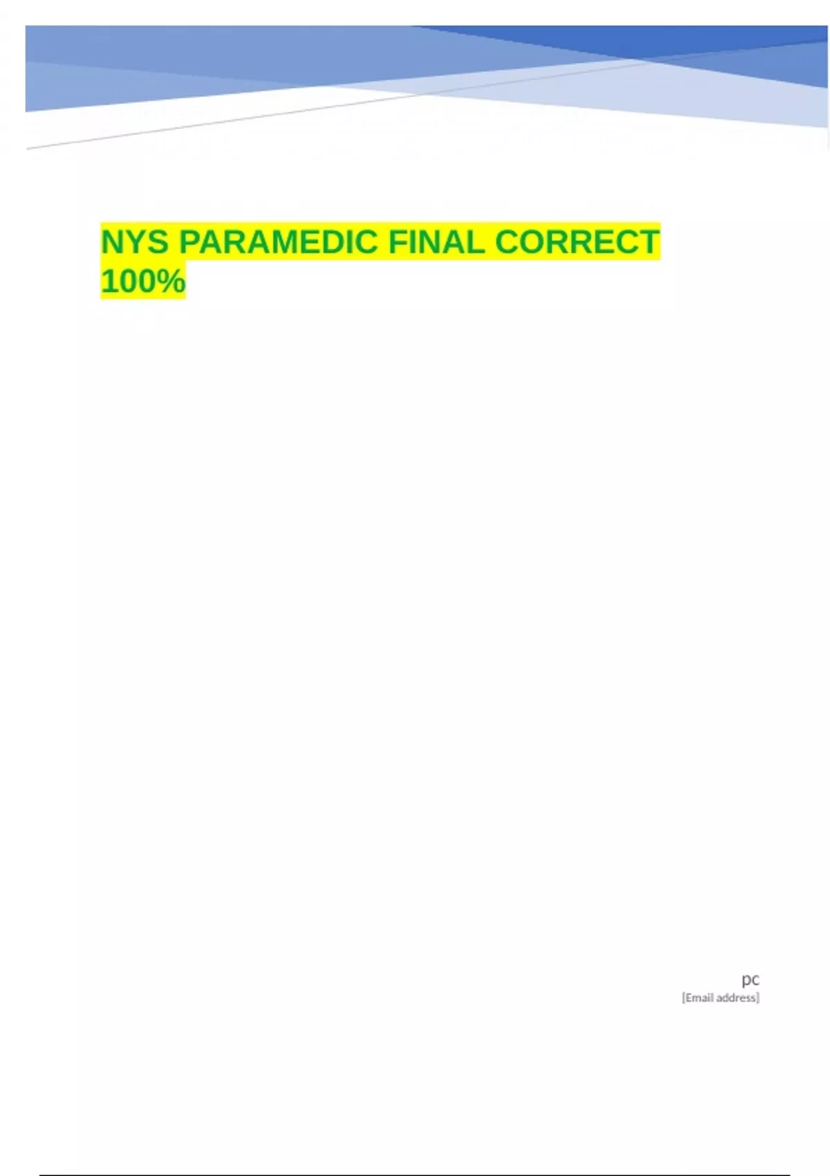 NYS PARAMEDIC FINAL CORRECT 100%