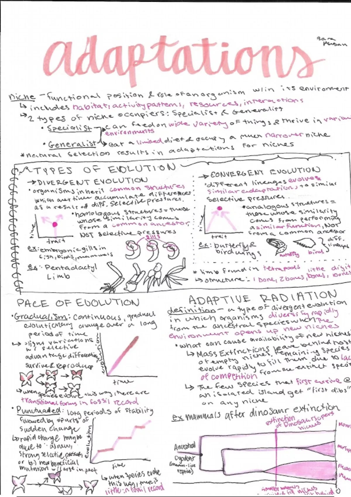 IB Biology HL Adaptations 1 Pager