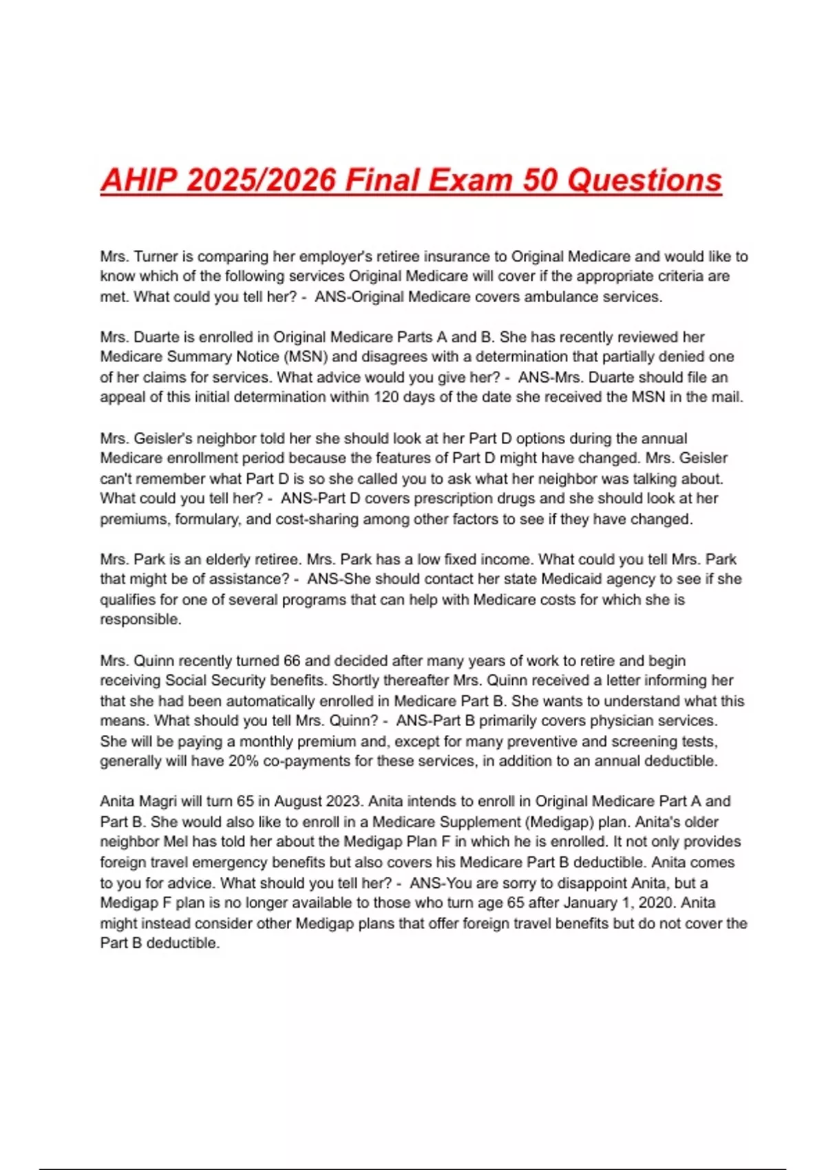 AHIP 2025/2026 Final Exam 50 Questions with correct Answers 2025/2026( A+ GRADED 100% VERIFIED).