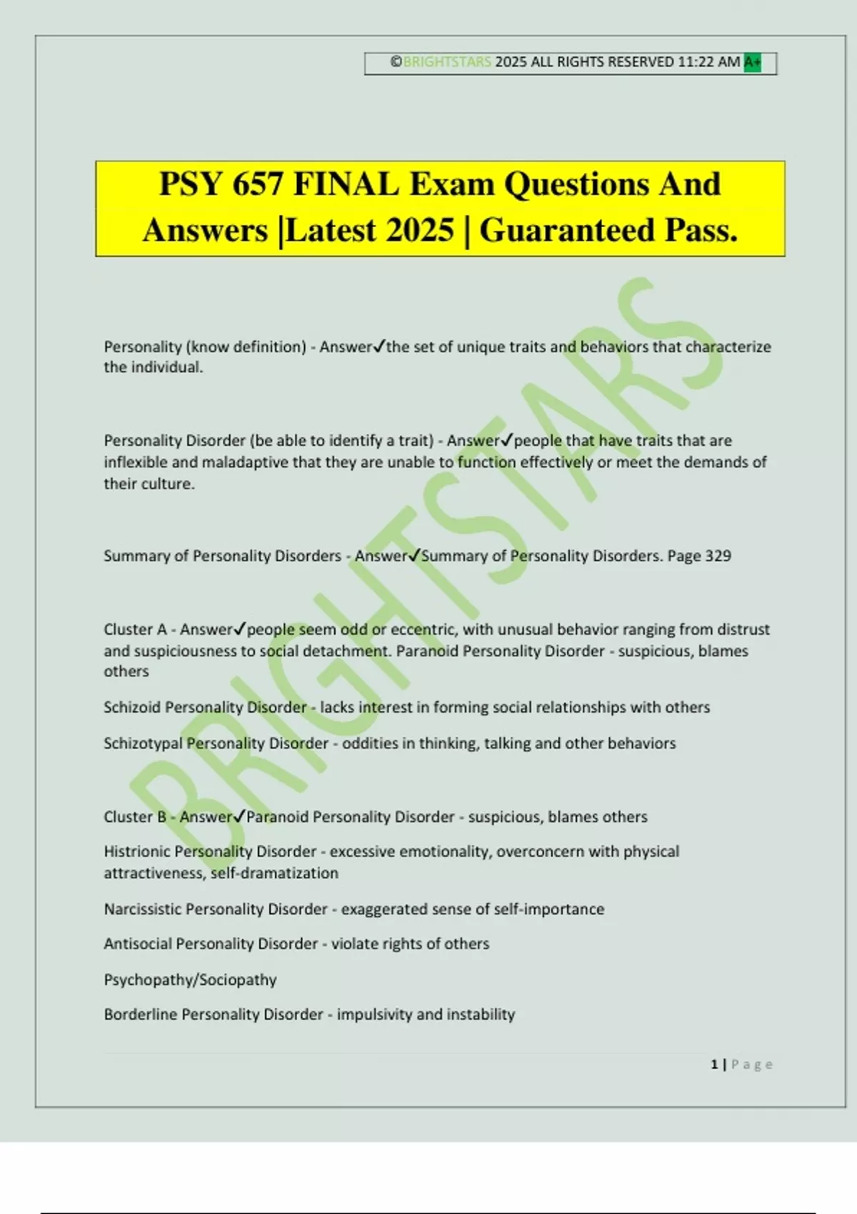 Summary of Personality Disorders - Answer✔Summary of Personality Disorders. Page 329