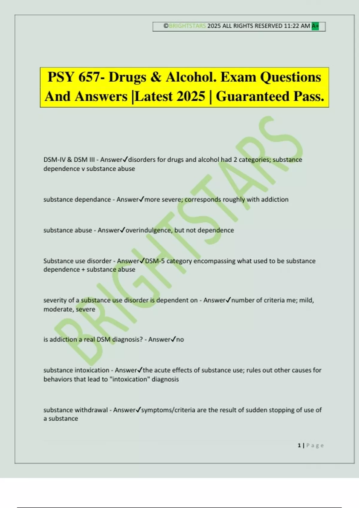 PSY 657- Drugs & Alcohol. Exam Questions