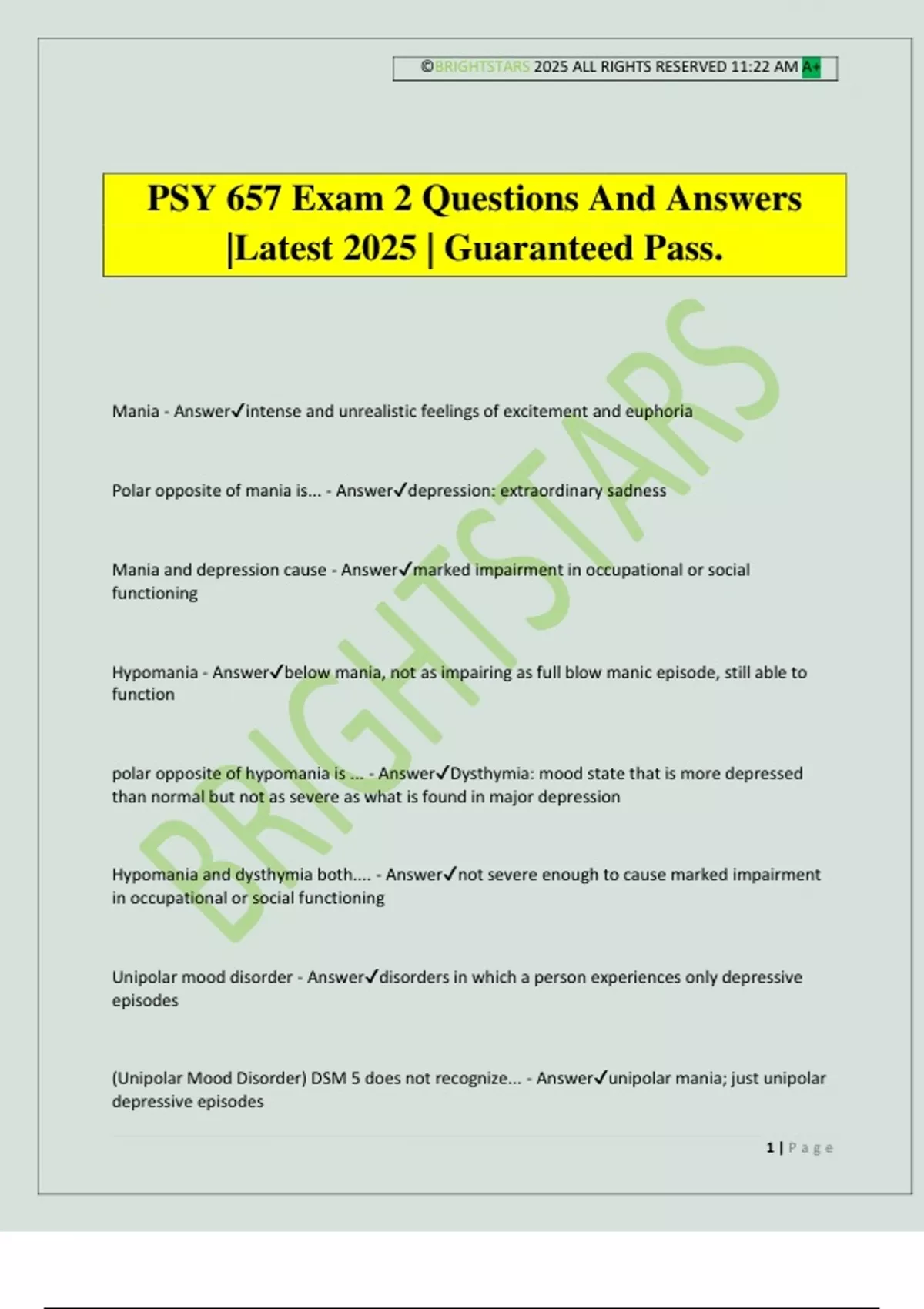 (Unipolar Mood Disorder) DSM 5 does not recognize... - Answer✔unipolar mania; just unipolar