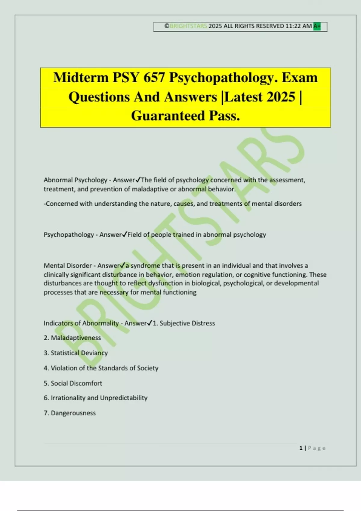 Abnormal Psychology - Answer✔The field of psychology concerned with the assessment,