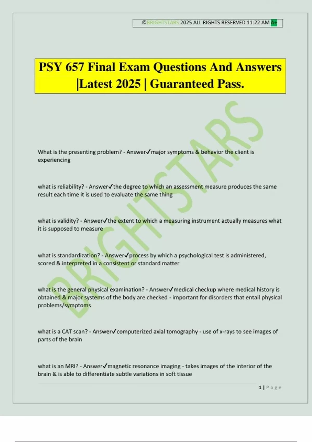 what is standardization? - Answer✔process by which a psychological test is administered,