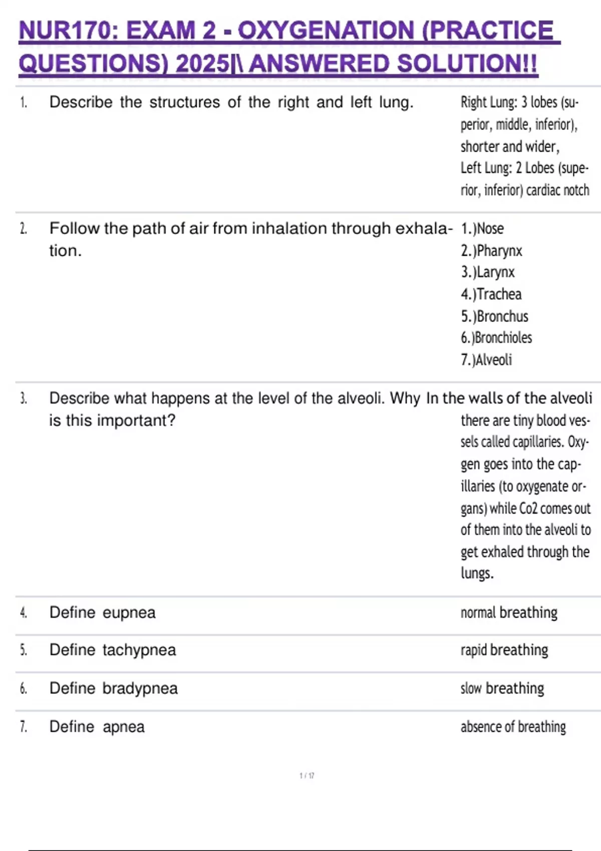 2. Follow the path of air from inhalation through exhala- 1.)Nose