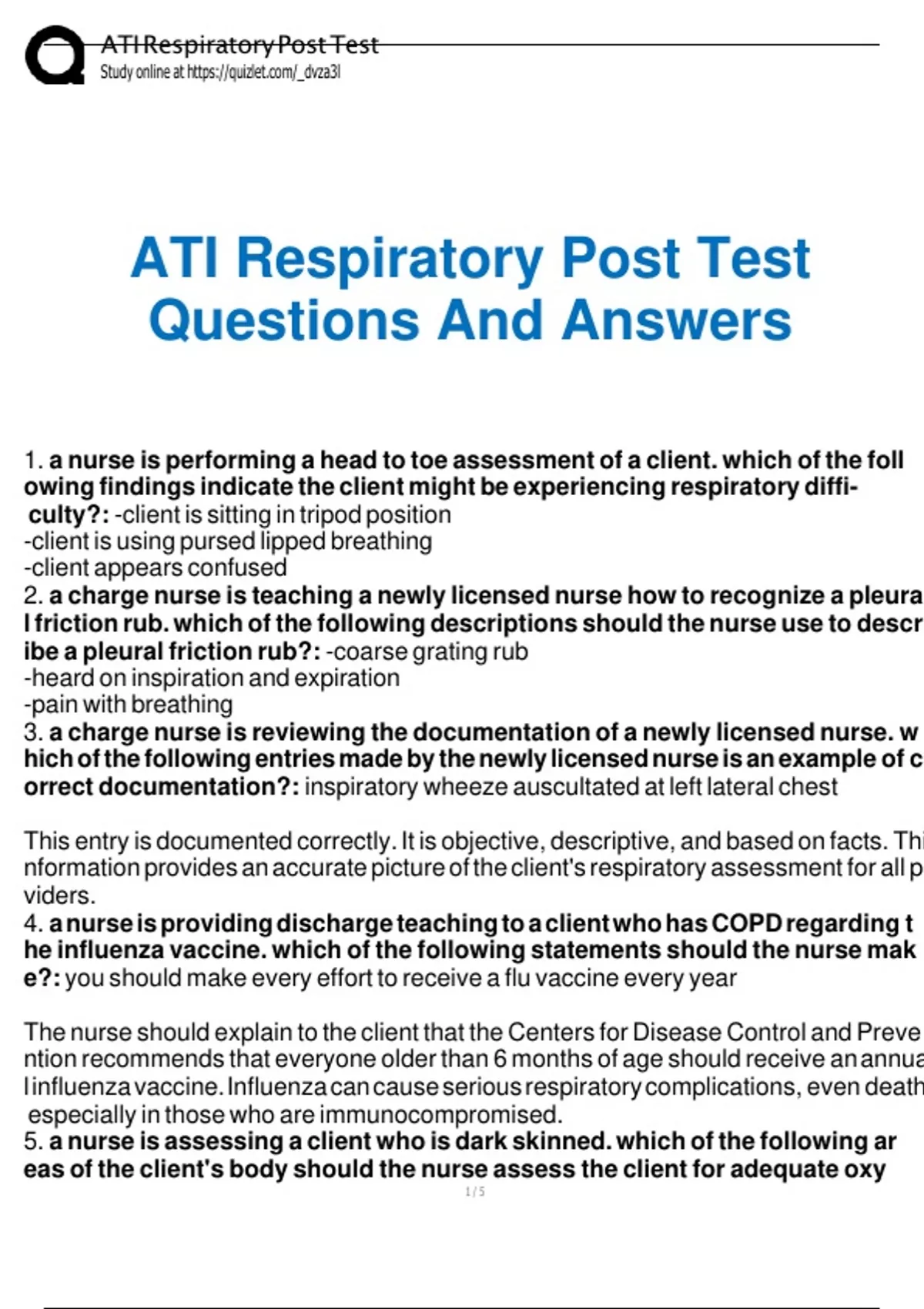 , ATI Respiratory Post Test