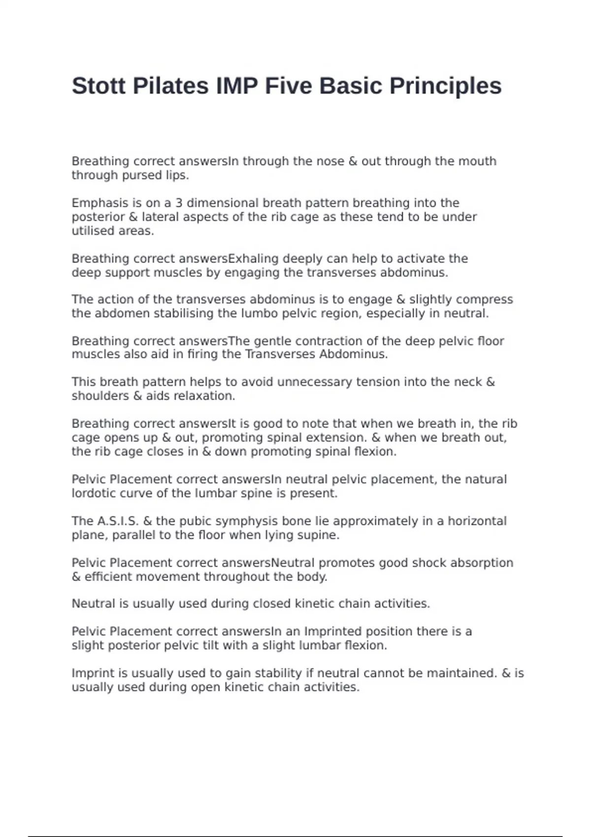 Breathing correct answersIn through the nose & out through the mouth