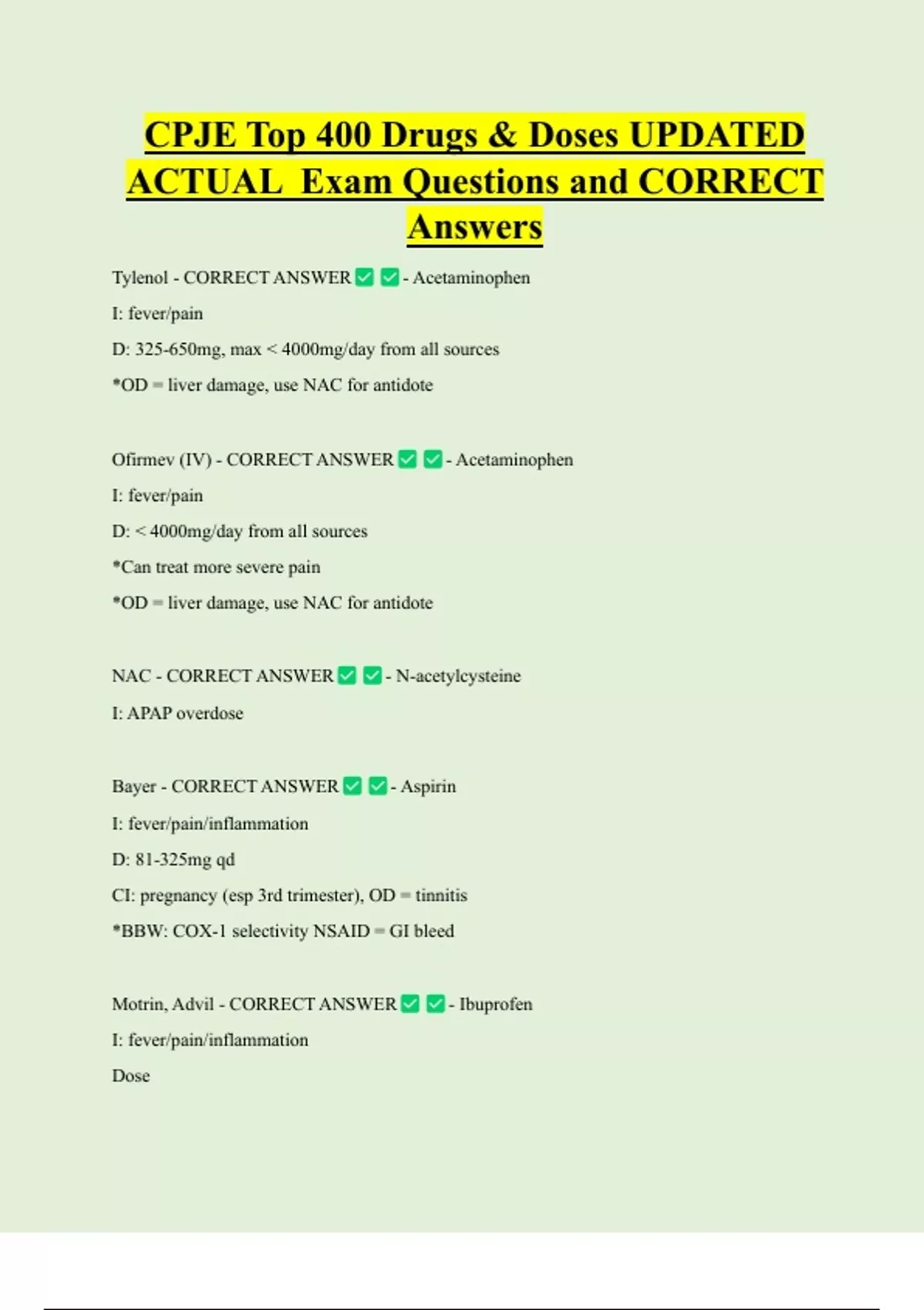 Tylenol - CORRECT ANSWER - Acetaminophen