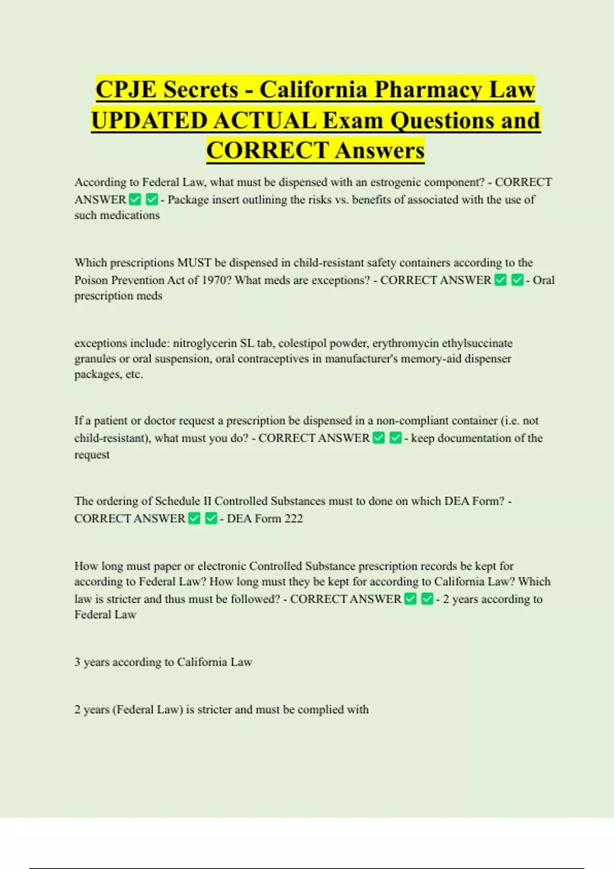 CORRECT Answers