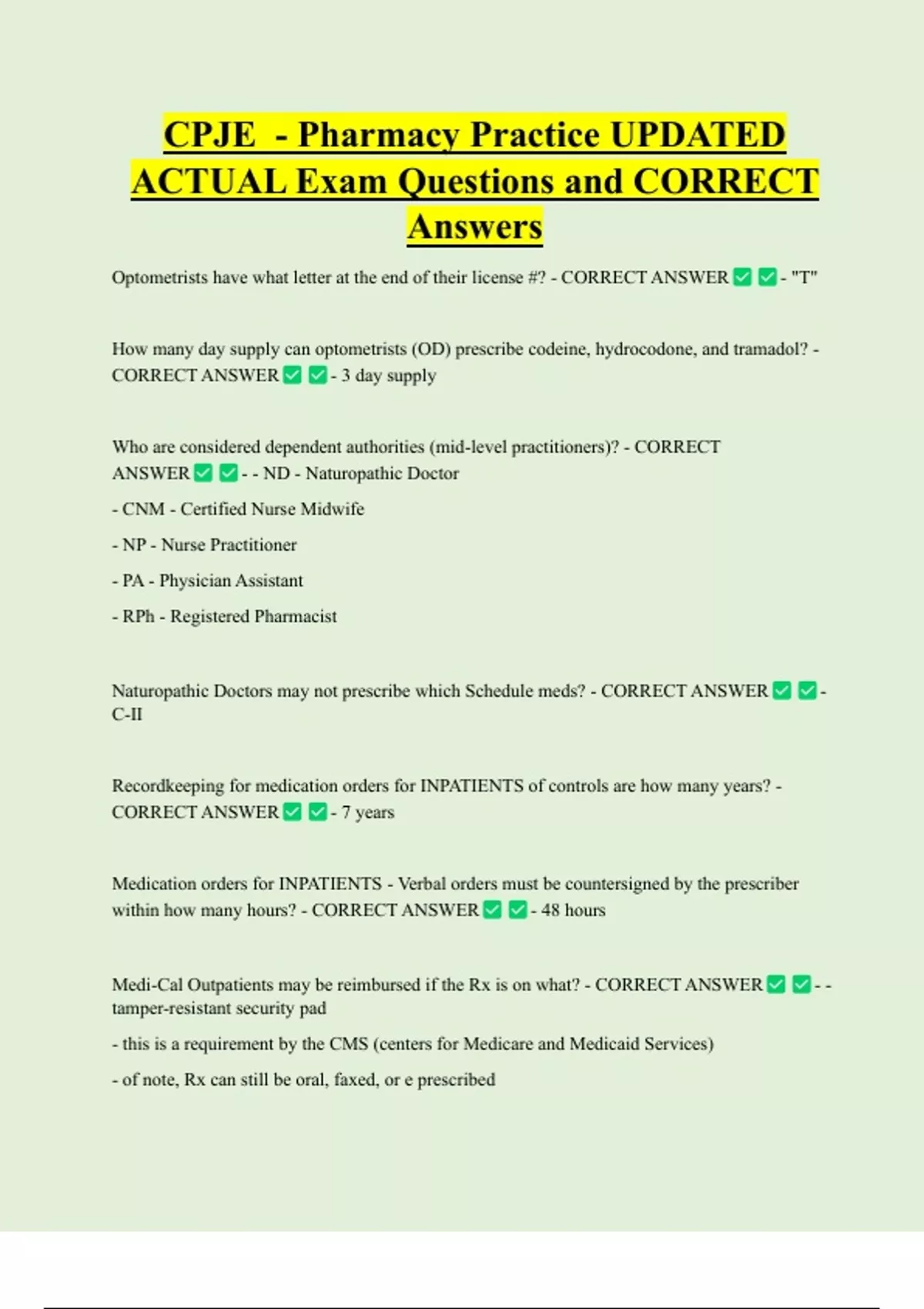 CORRECT ANSWER - - should only be for non-controlled and non-psychiatric meds