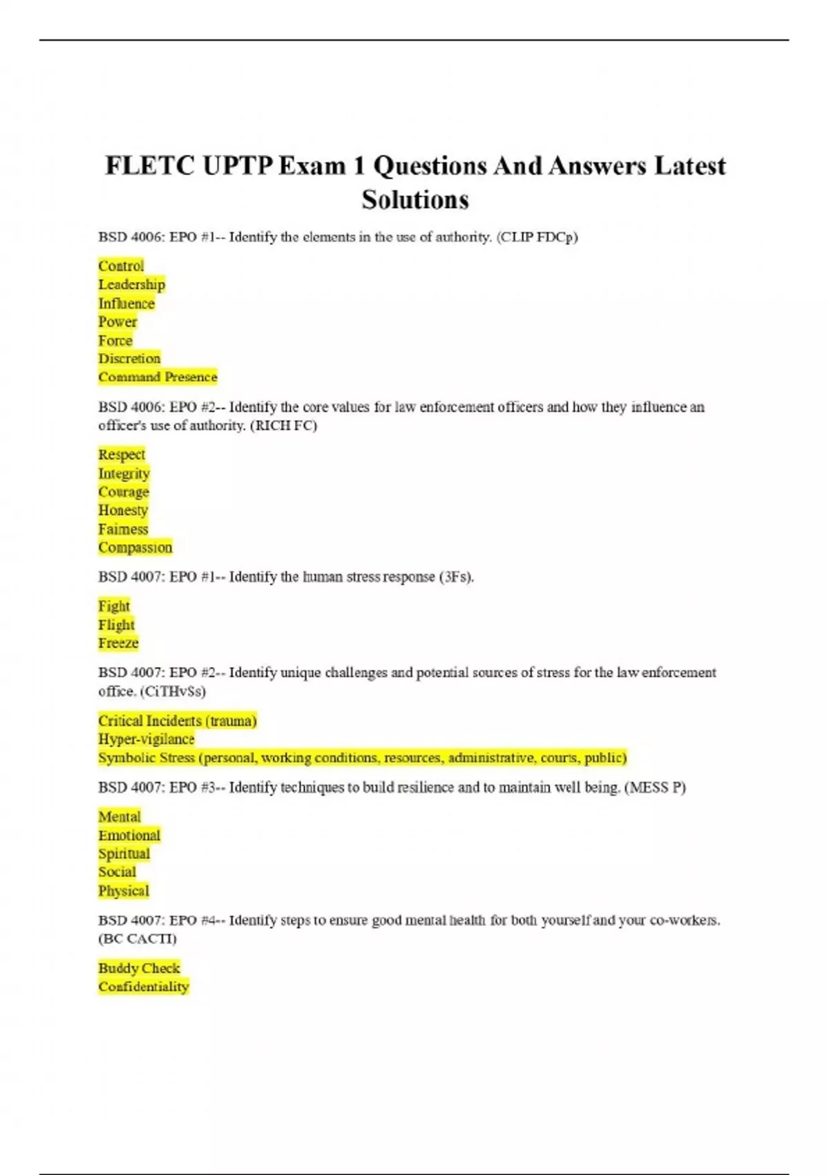 fletc uptp exam 1 questions and answers