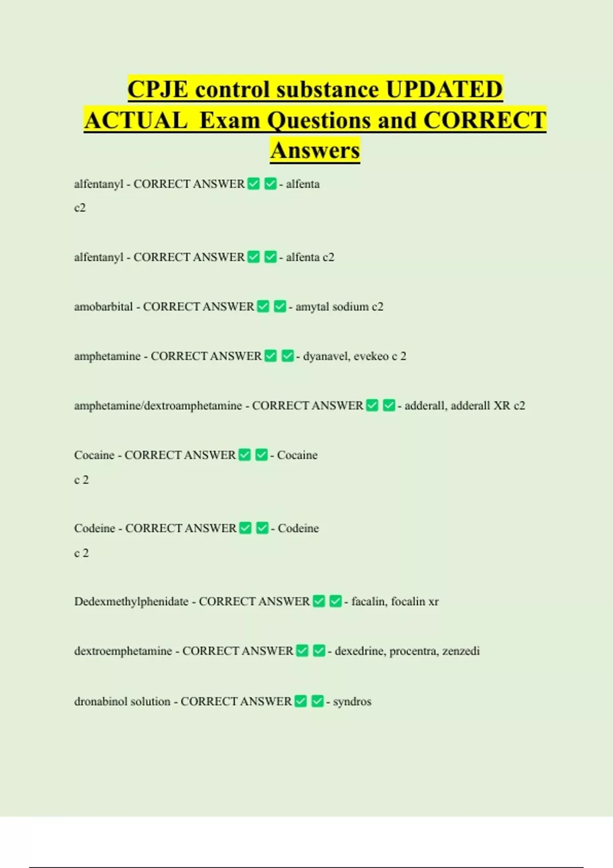 CPJE control substance UPDATED ACTUAL Exam Questions and CORRECT Answers