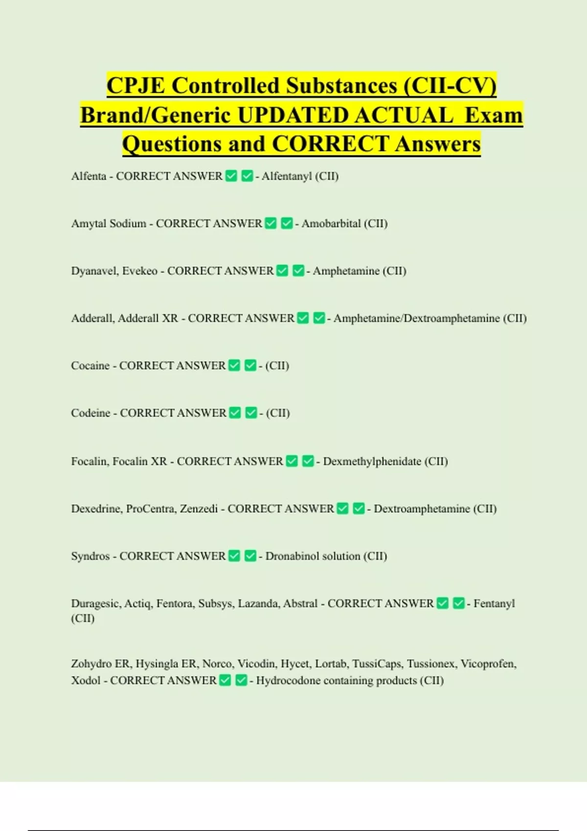 Cocaine - CORRECT ANSWER - (CII)