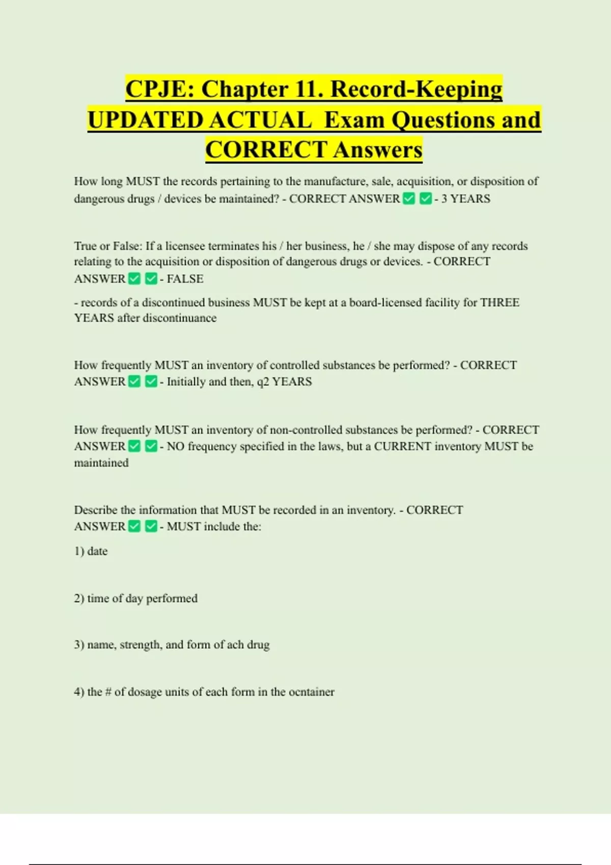 CORRECT Answers