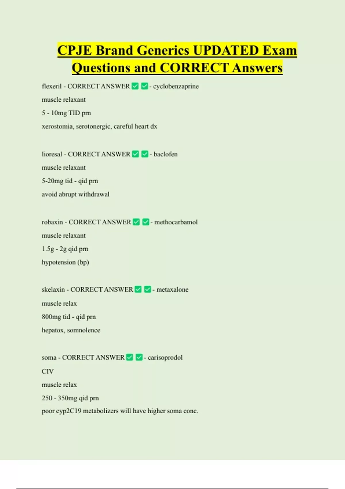 soma - CORRECT ANSWER - carisoprodol