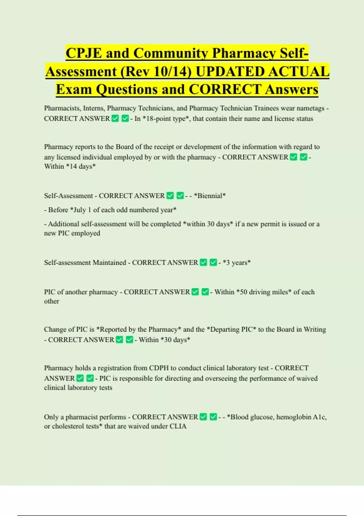Only a pharmacist performs - CORRECT ANSWER - - *Blood glucose, hemoglobin A1c,