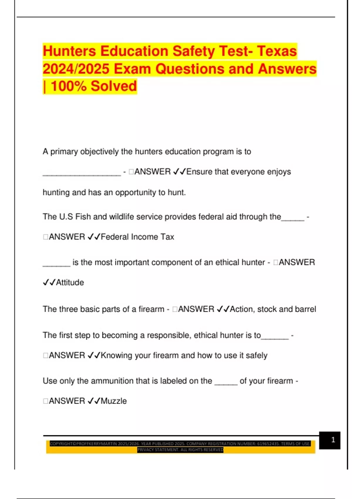 Hunters Education Safety Test- Texas 2024/2025 Exam Questions and Answers | 100% Solved