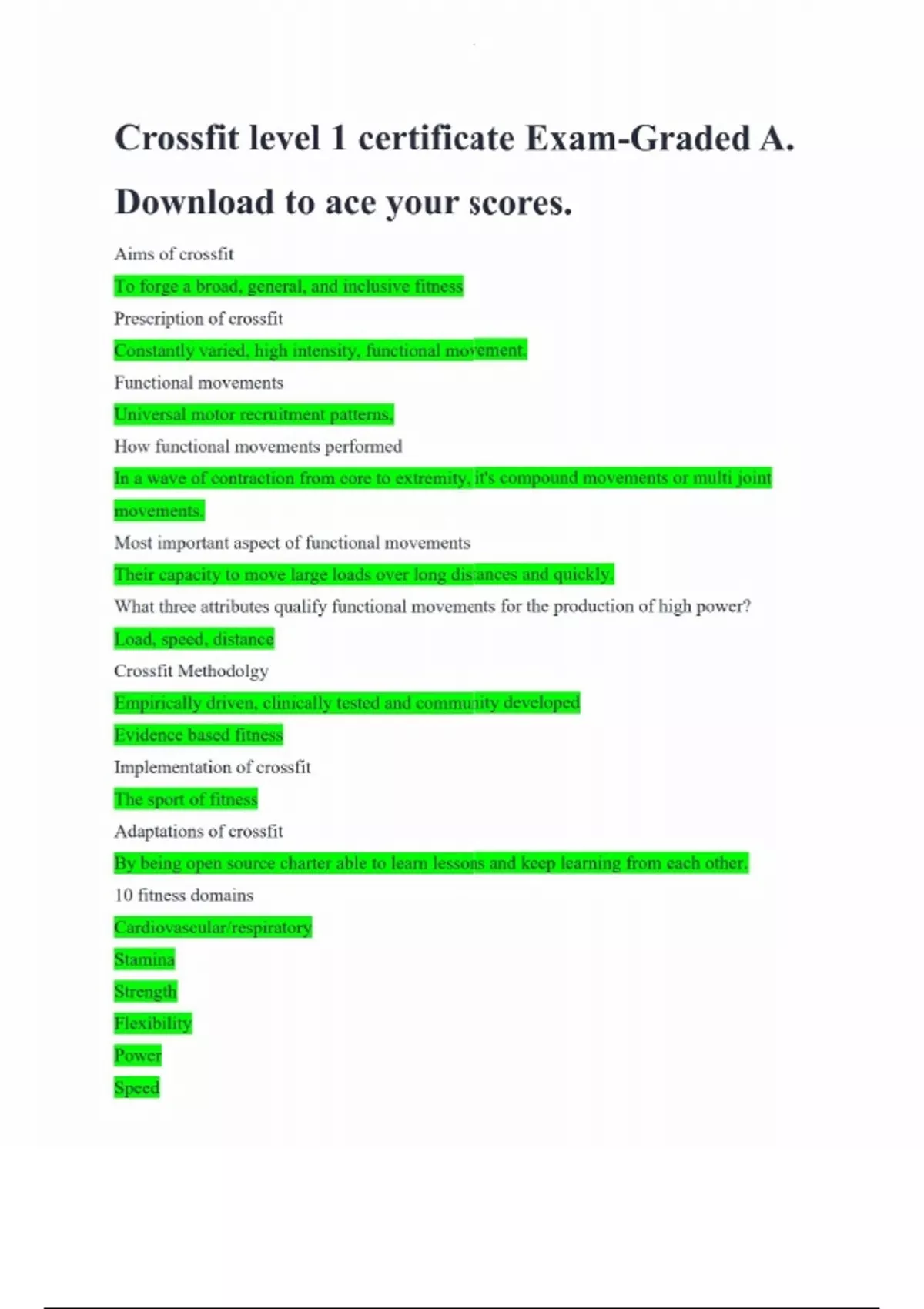 Crossfit level 1 certificate Exam-Graded A. Download to ace your scores.