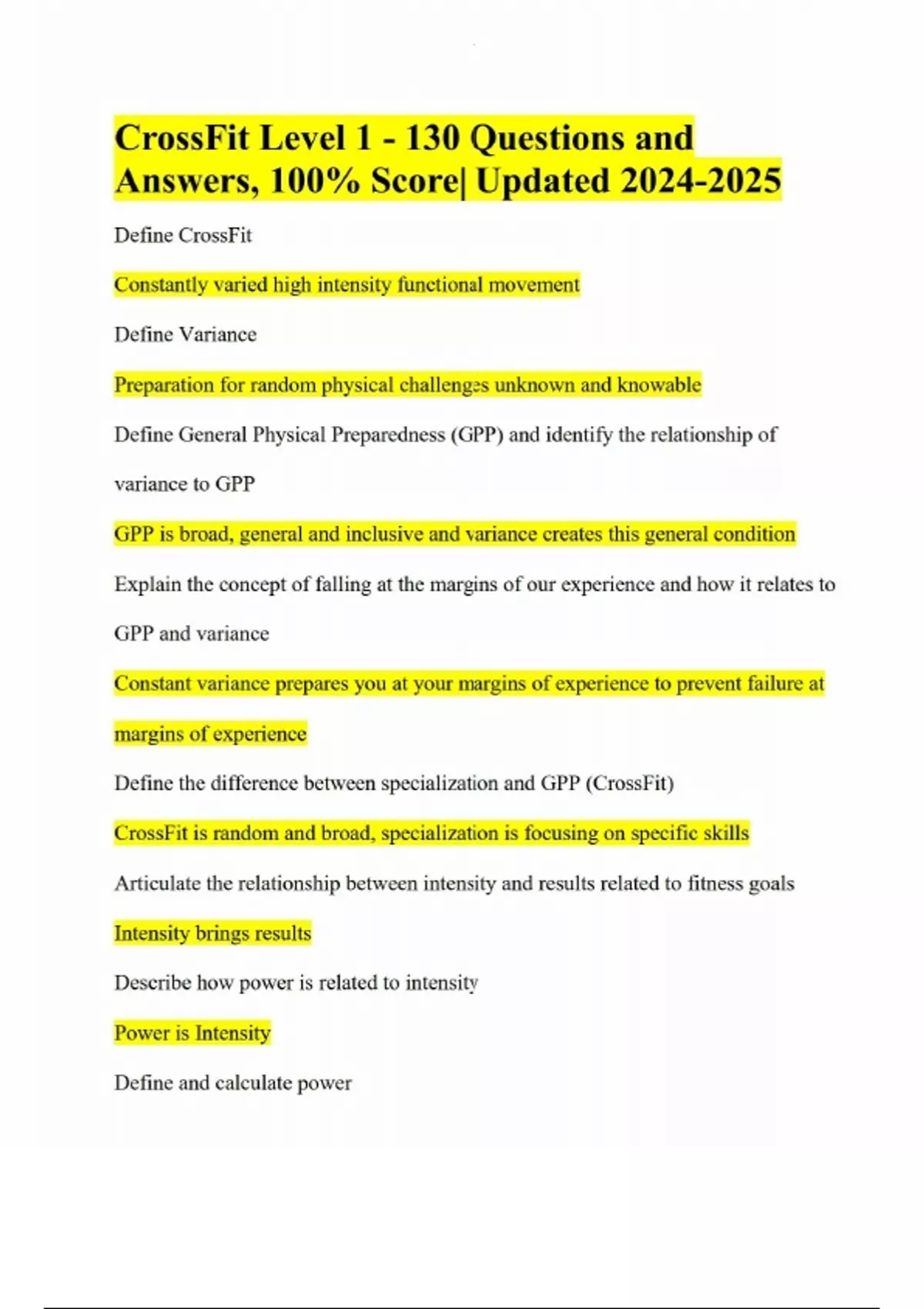 CrossFit Level 1 - 130 Questions and Answers, 100% Score| Updated