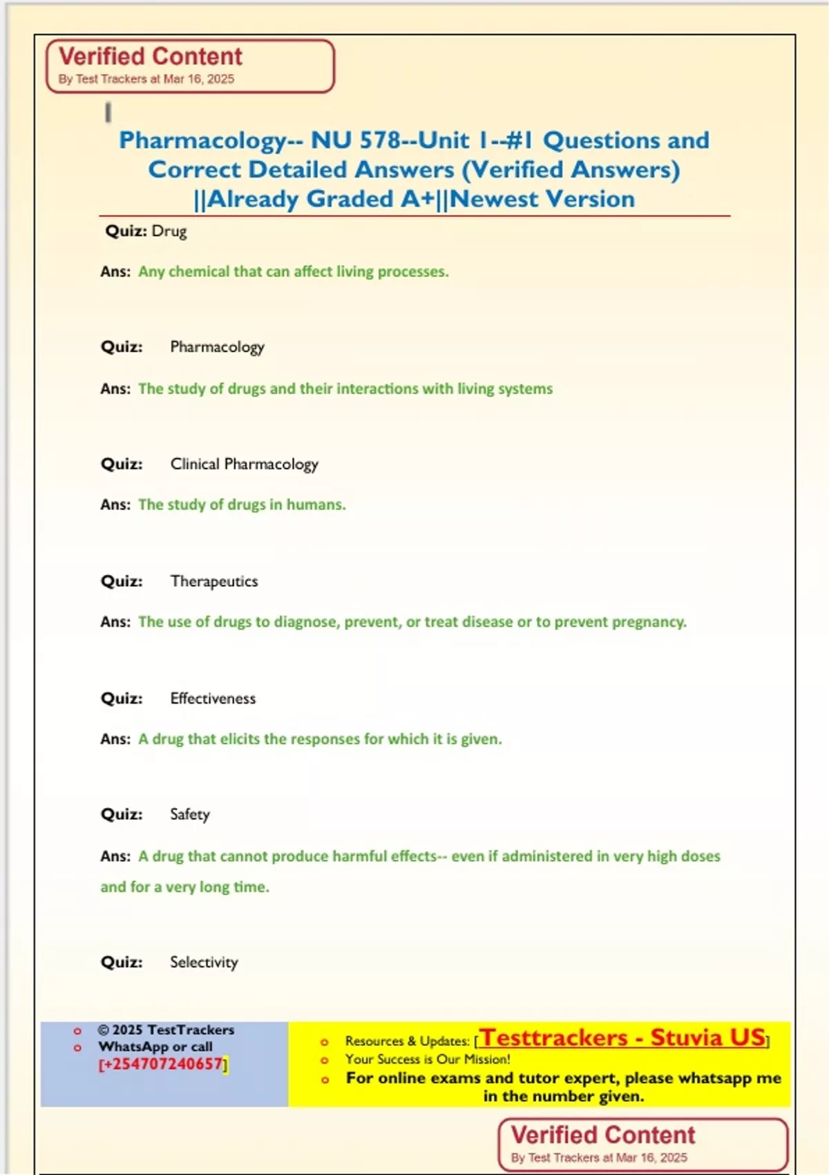Pharmacology-- NU 578--Unit 1--#1 Questions and Correct Detailed Answers (Verified Answers) ||Already Graded A+||Newest VersionPharmacology-- NU 578--Unit 1--#1 Questions and Correct Detailed Answers (Verified Answers) ||Already Graded A+||Newest Version
