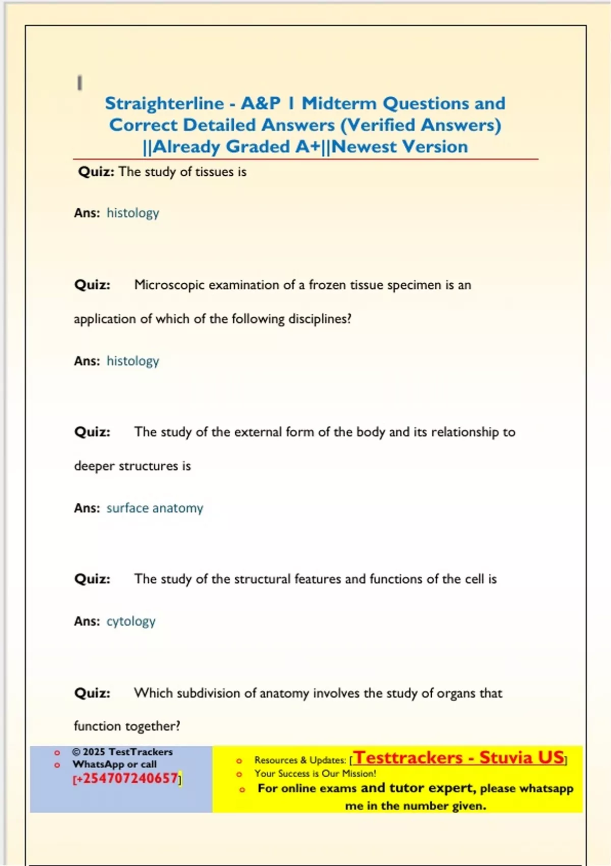WhatsApp or call o Resources & Updates: [Testtrackers - Stuvia US]
