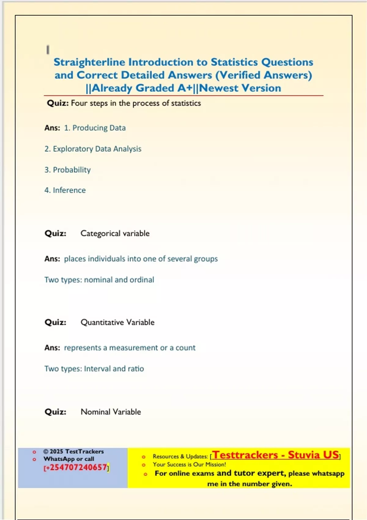 WhatsApp or call o Resources & Updates: [Testtrackers - Stuvia US]